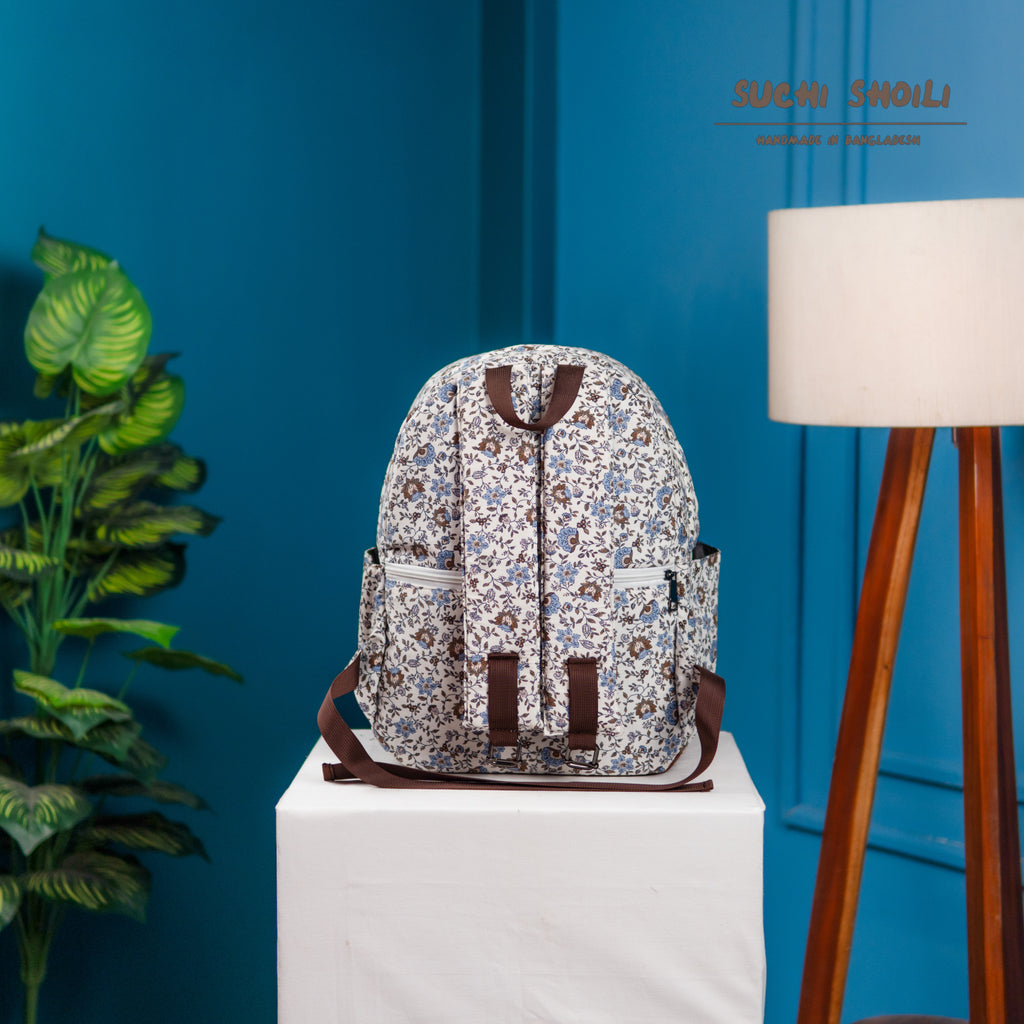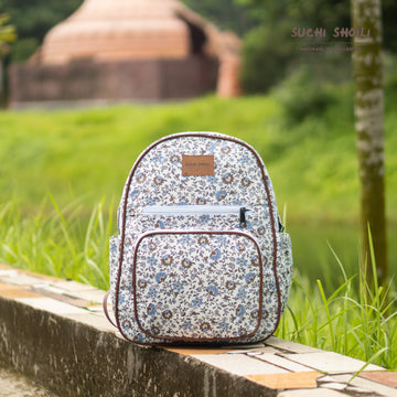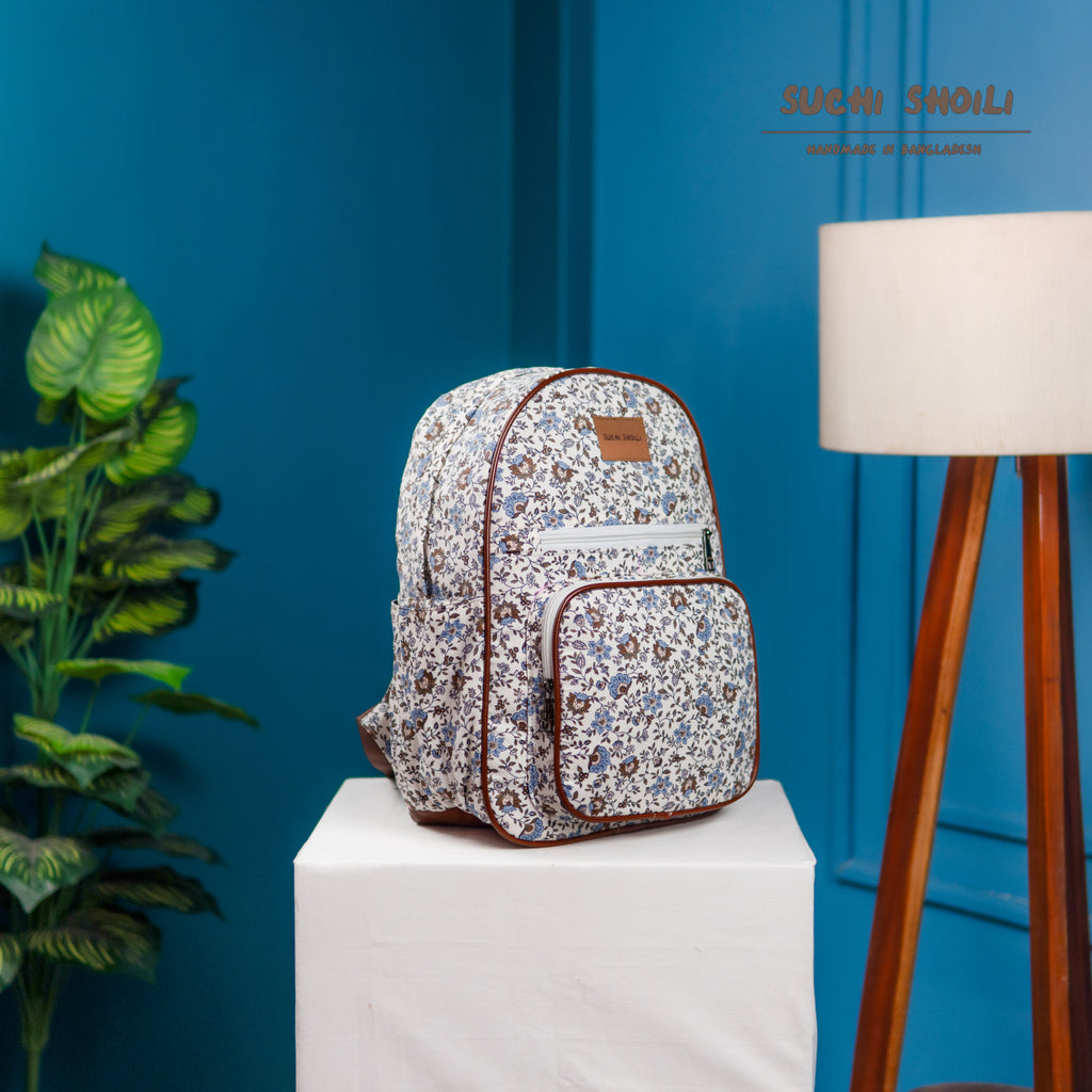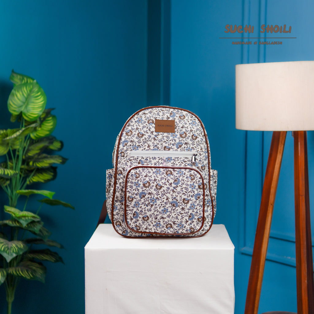 Blue White Flower Corduroy Fabric Aboni Backpack