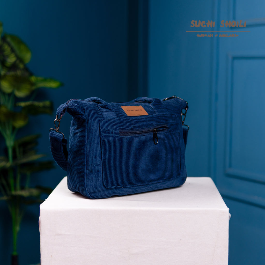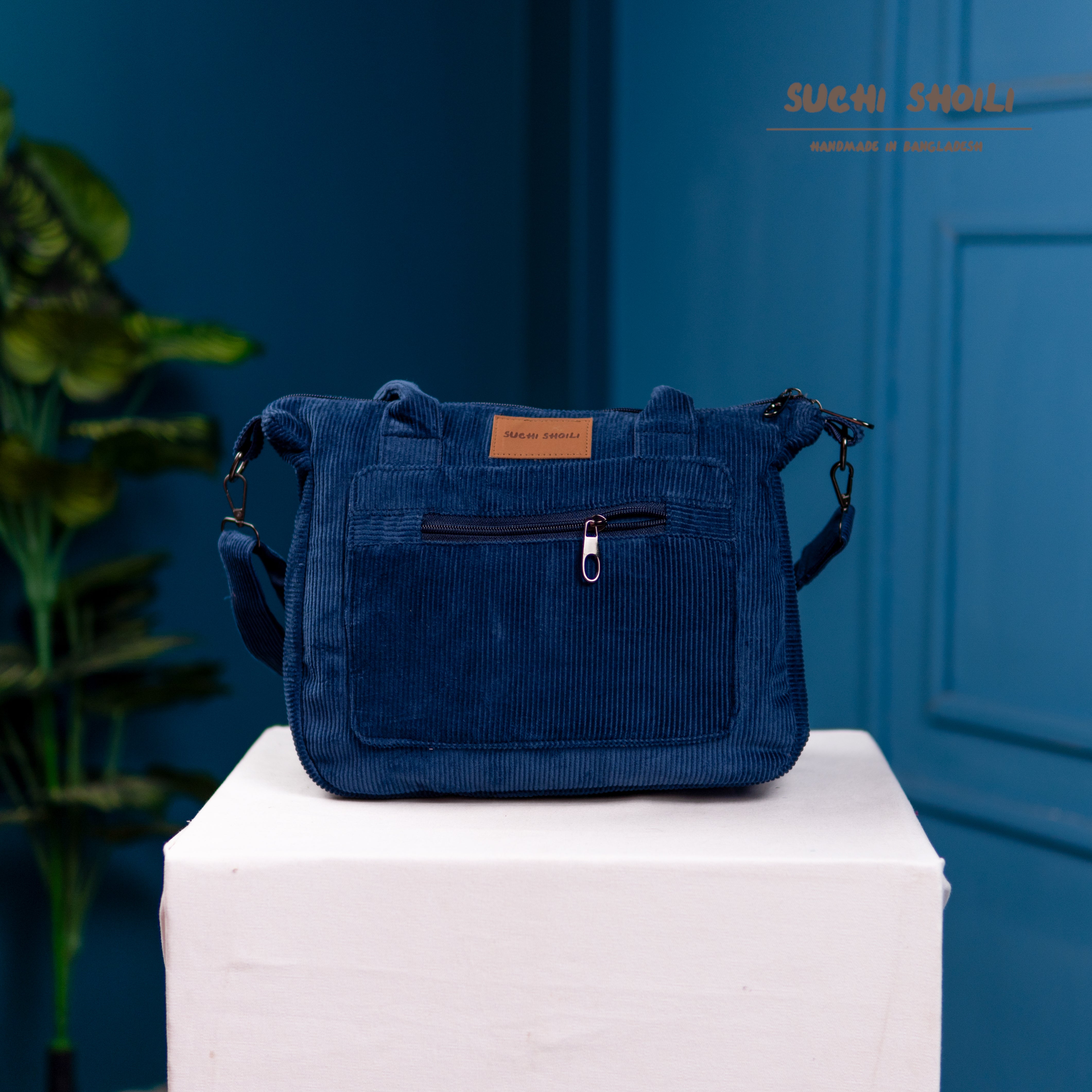 Dark Navy Bule Corduroy Fabric Ajrin Crossbody Bag