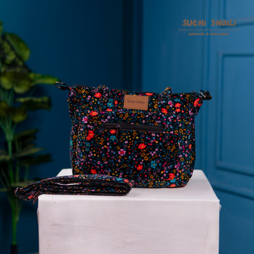 Multi Daisy Corduroy Fabric Ajrin Crossbody Bag