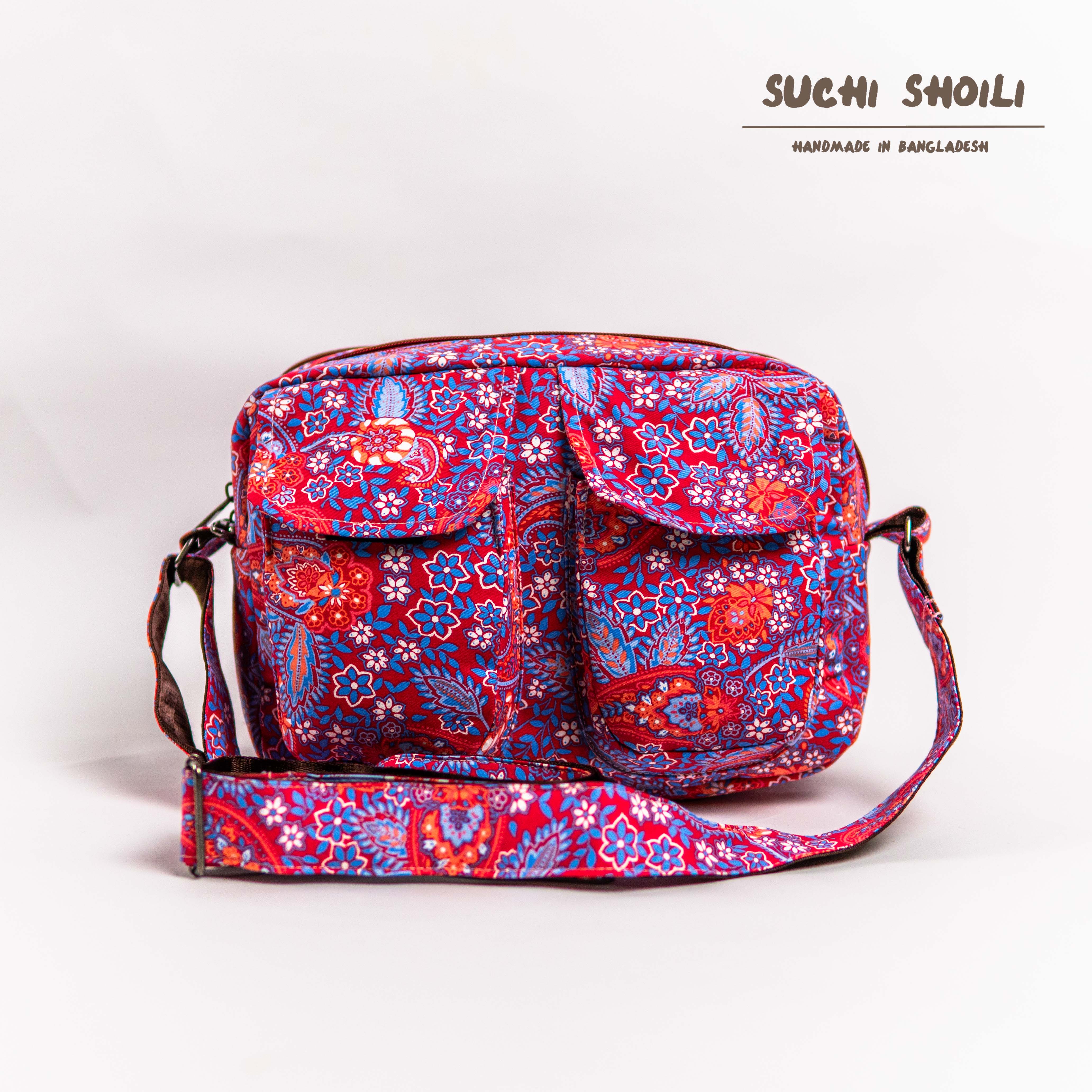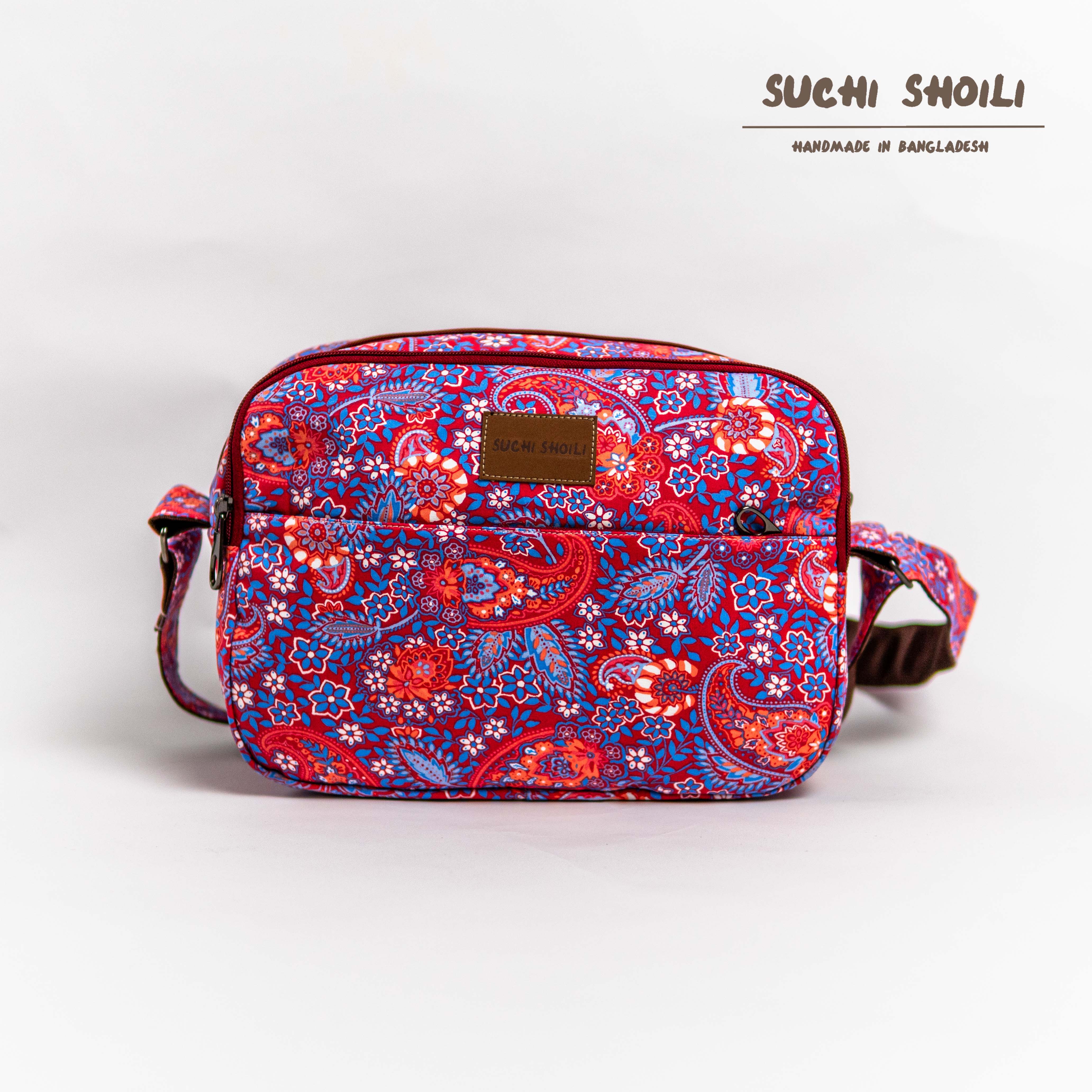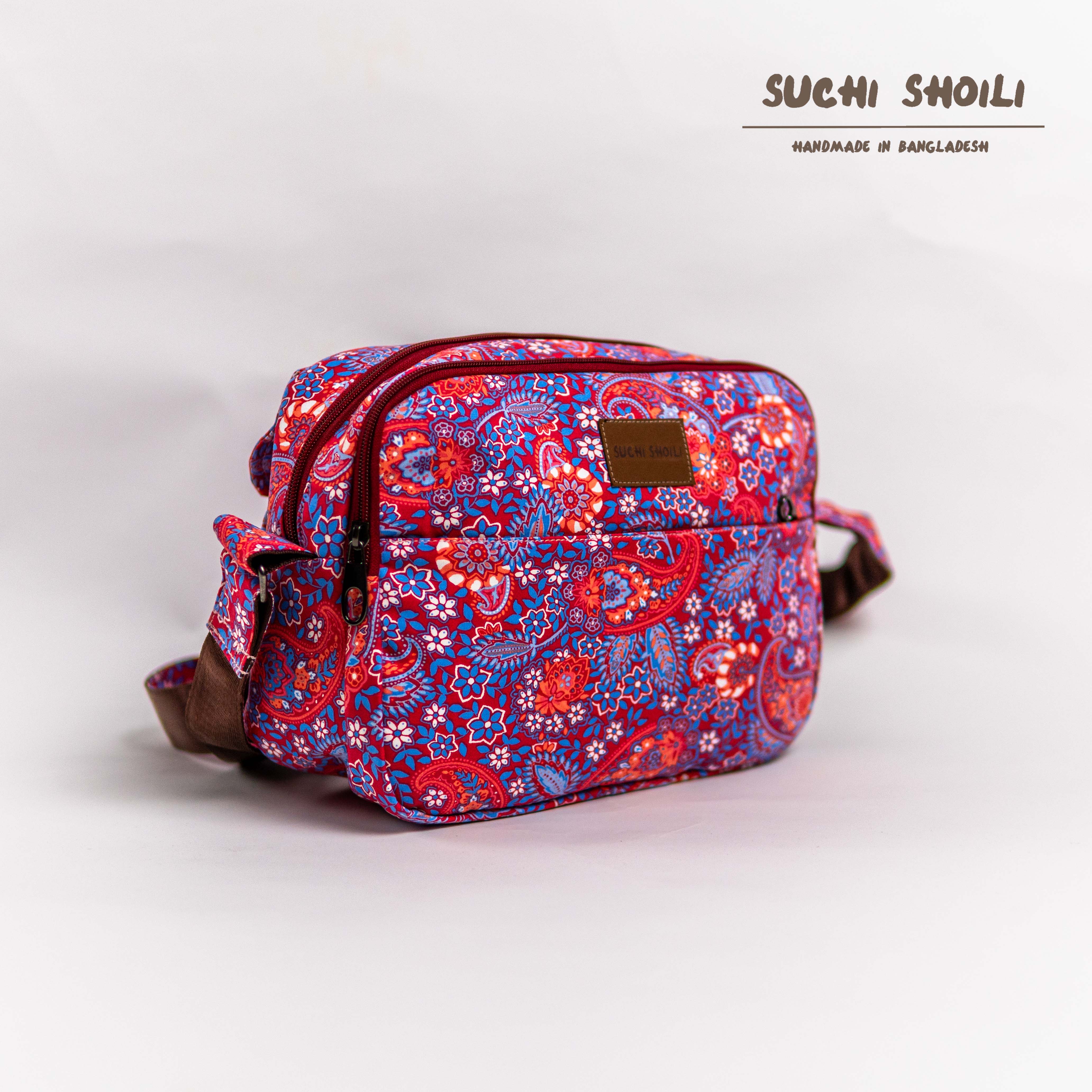 Orange Red Paisley Anjara Double Chamber Crossbody Bag
