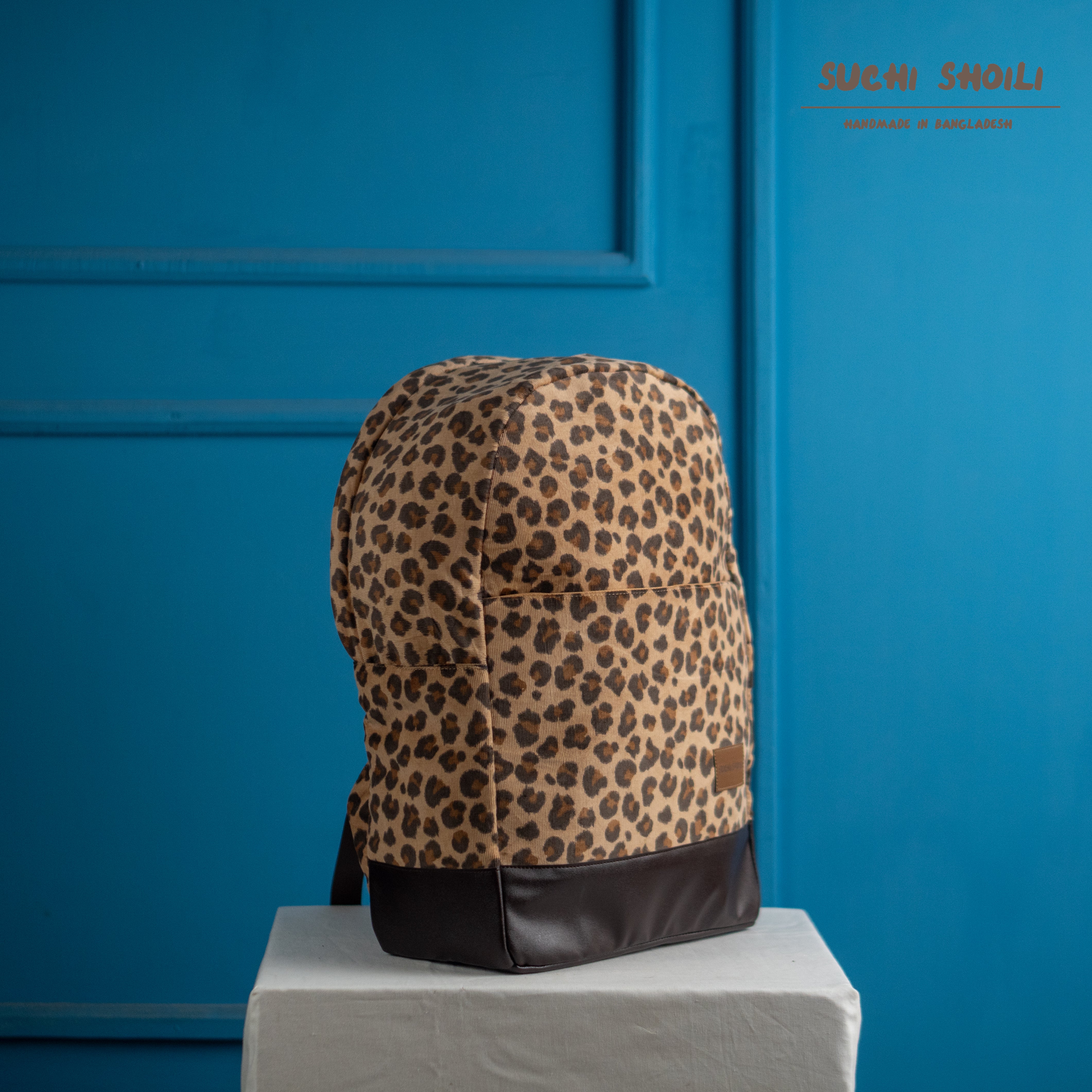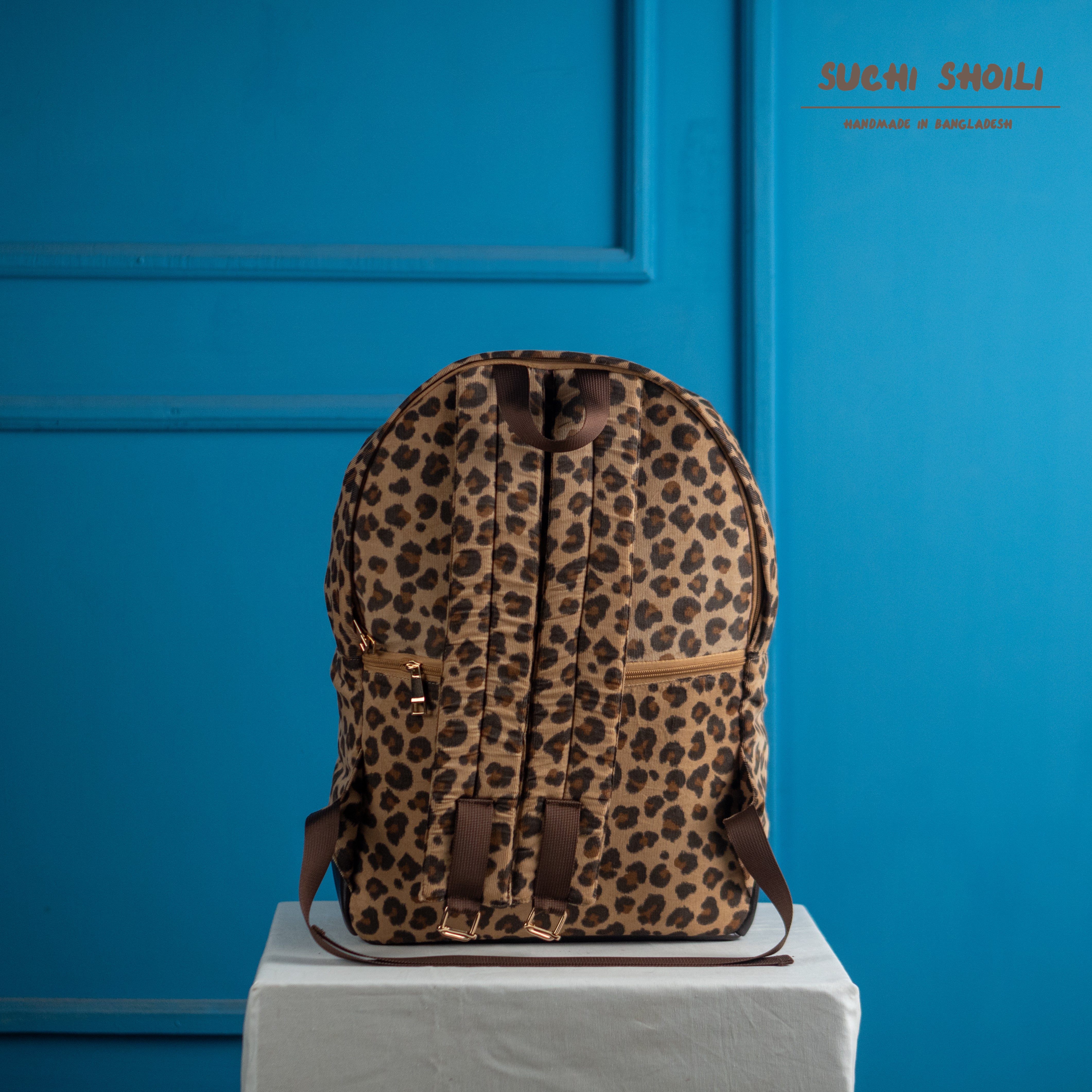 Trendy leopard Corduroy Fabric Anti Theft Premium Backpack