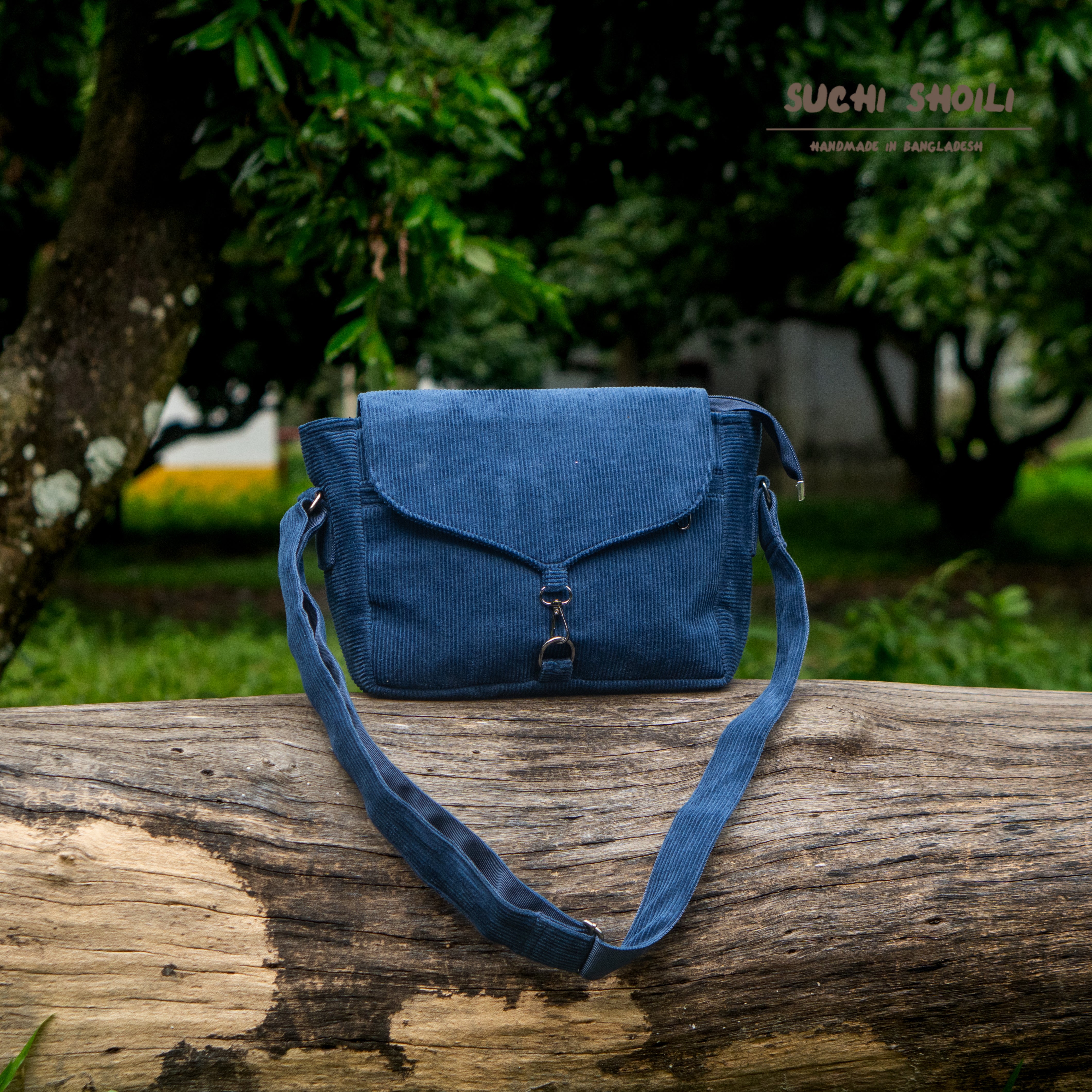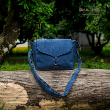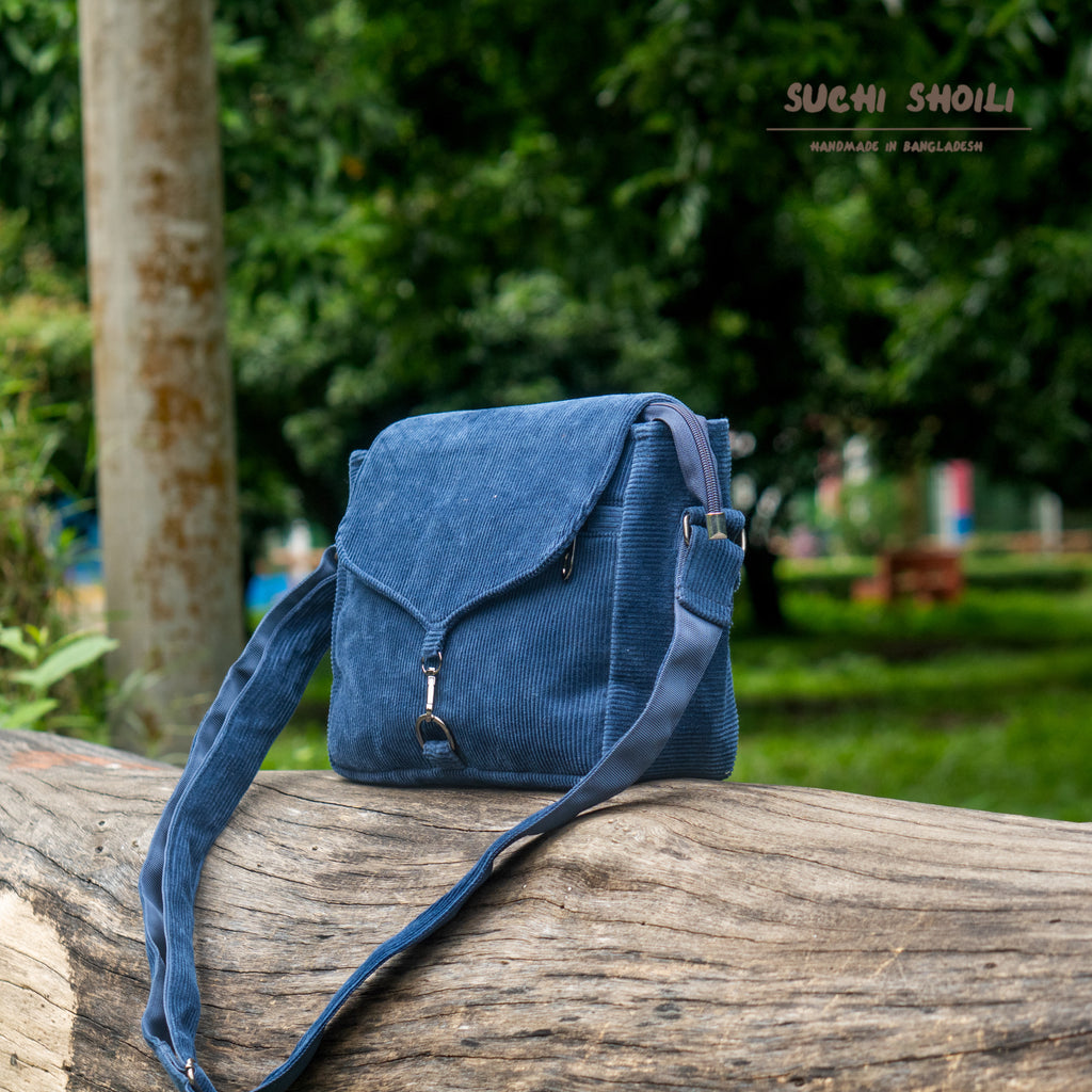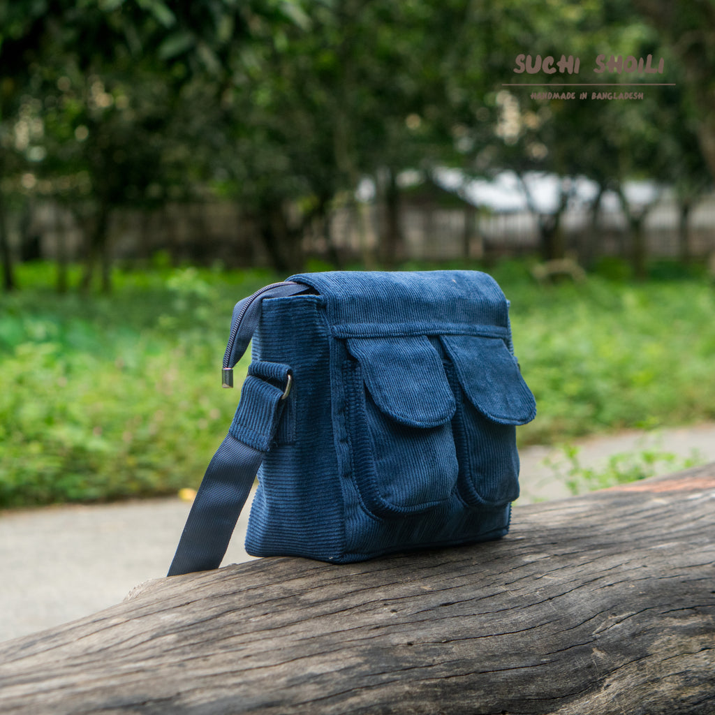 Navy Corduroy Fabric Bagalina Crossbody Bag