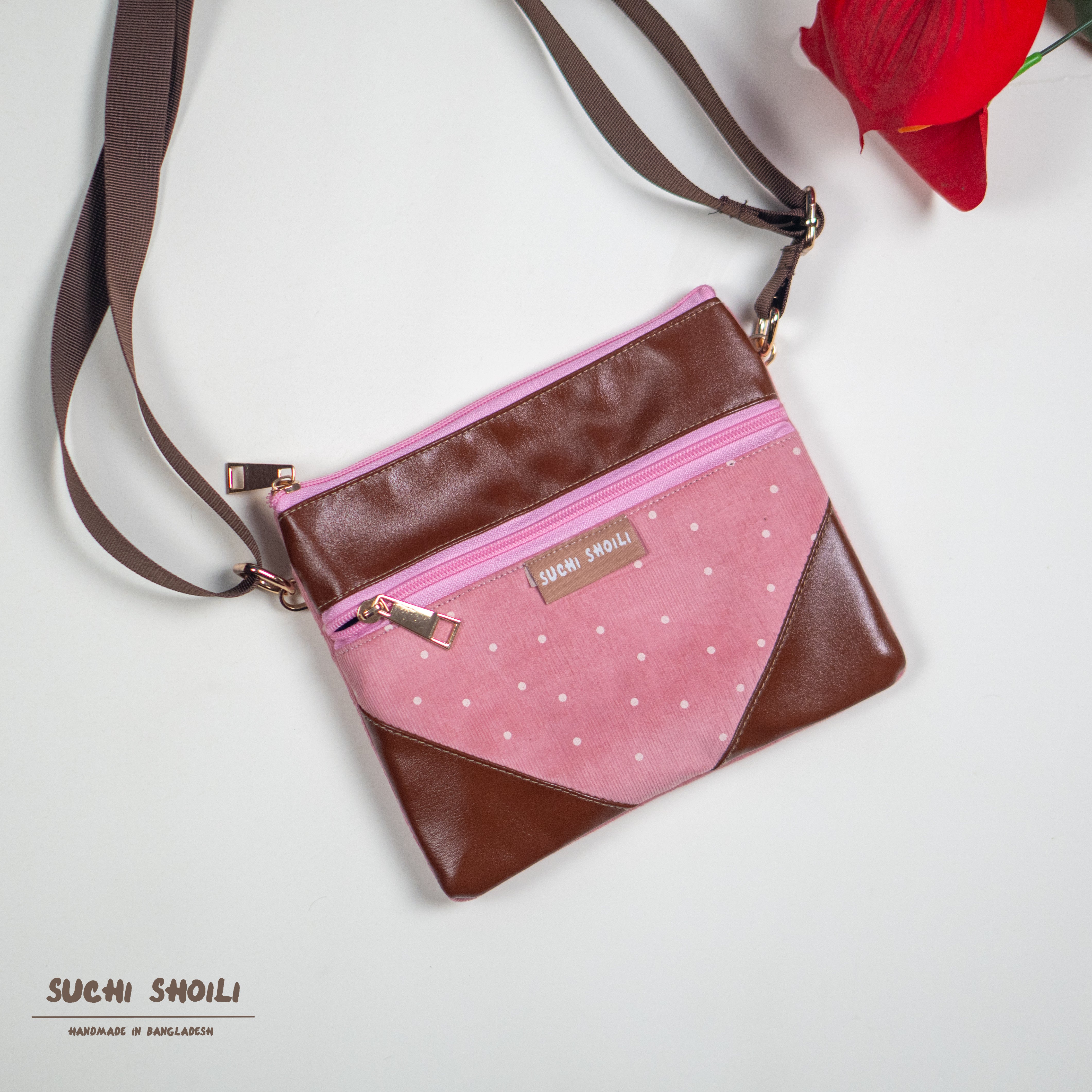 Made with Fabric and Faux Leather and has Two Zipper compartment.