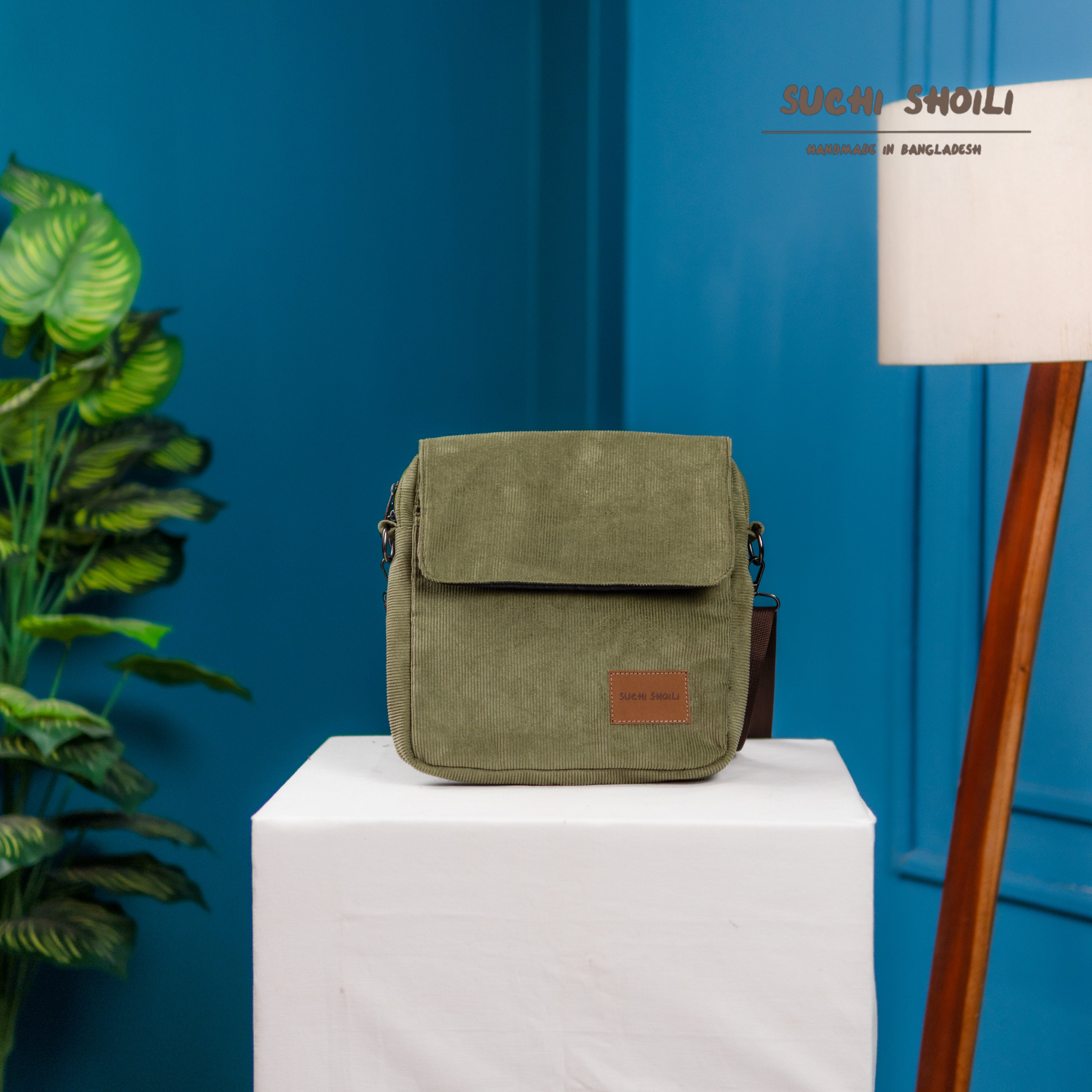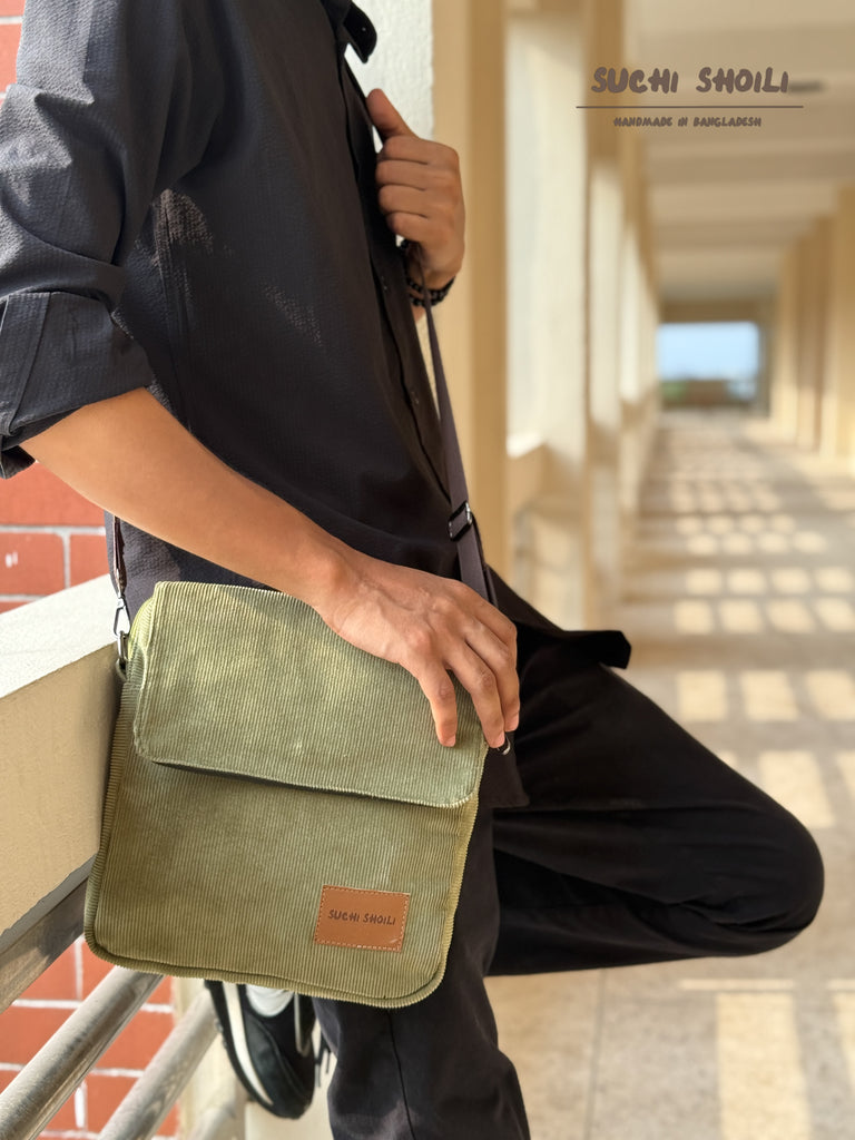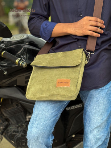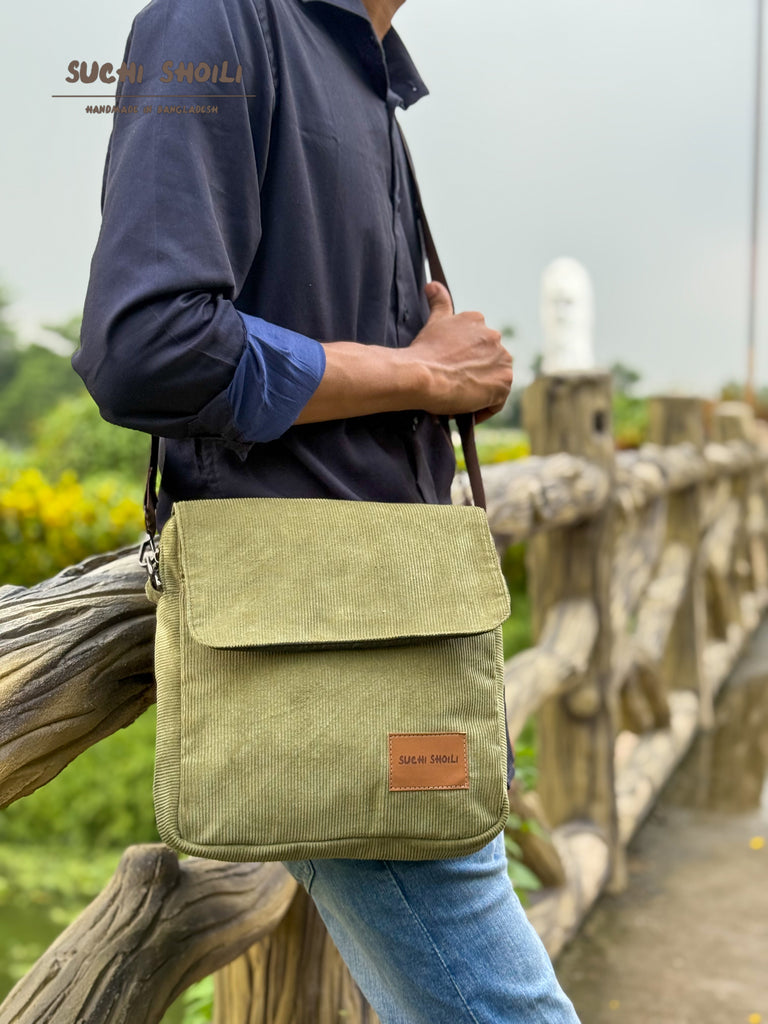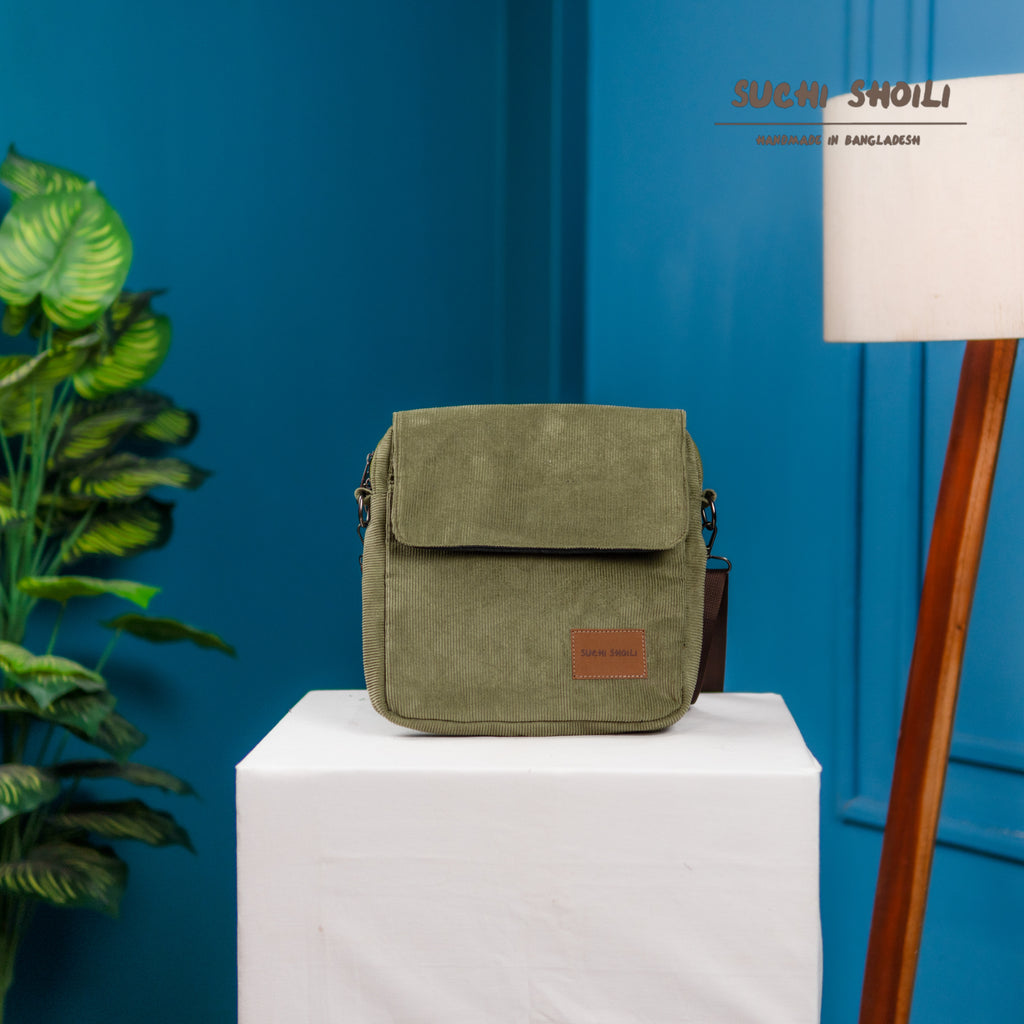 Ash Olive Corduroy Fabric Grid Cross Bag