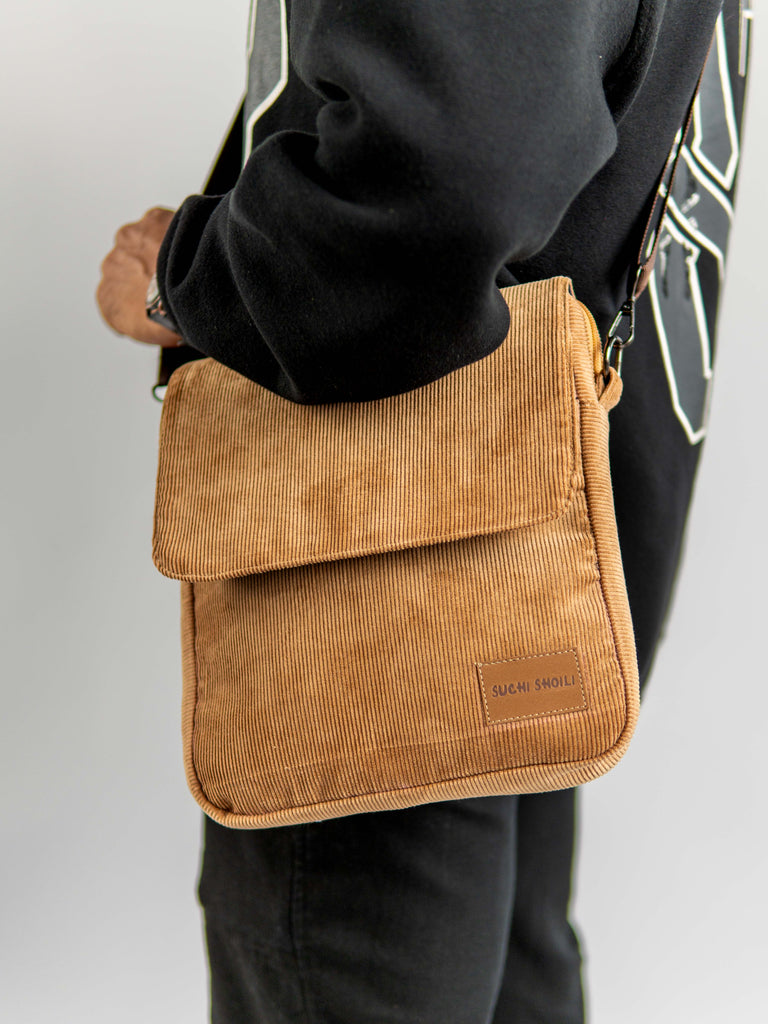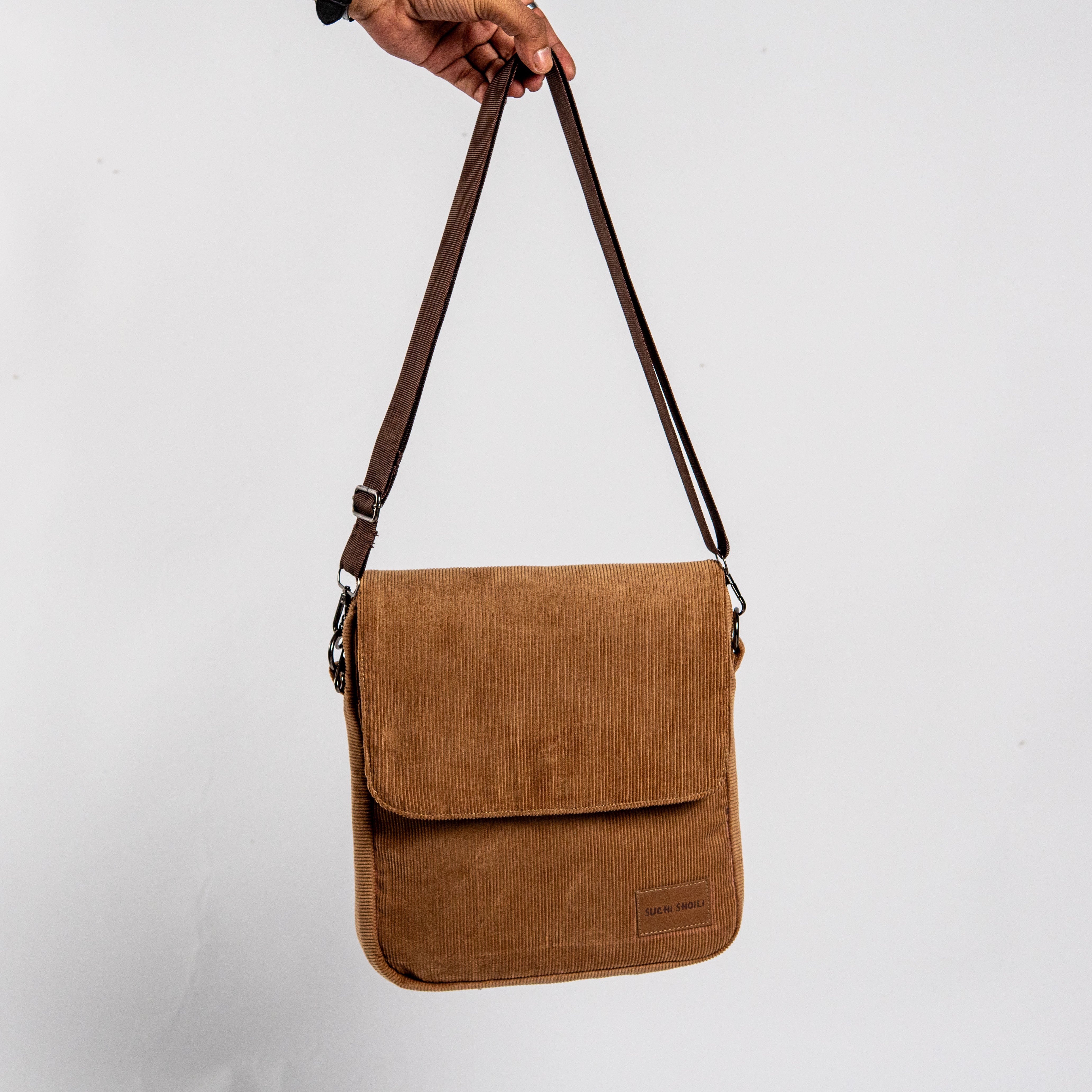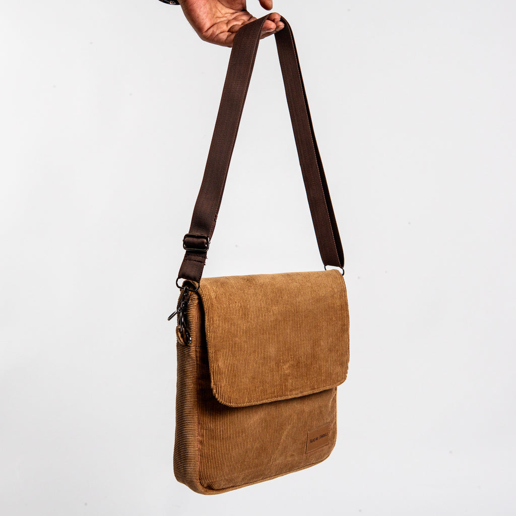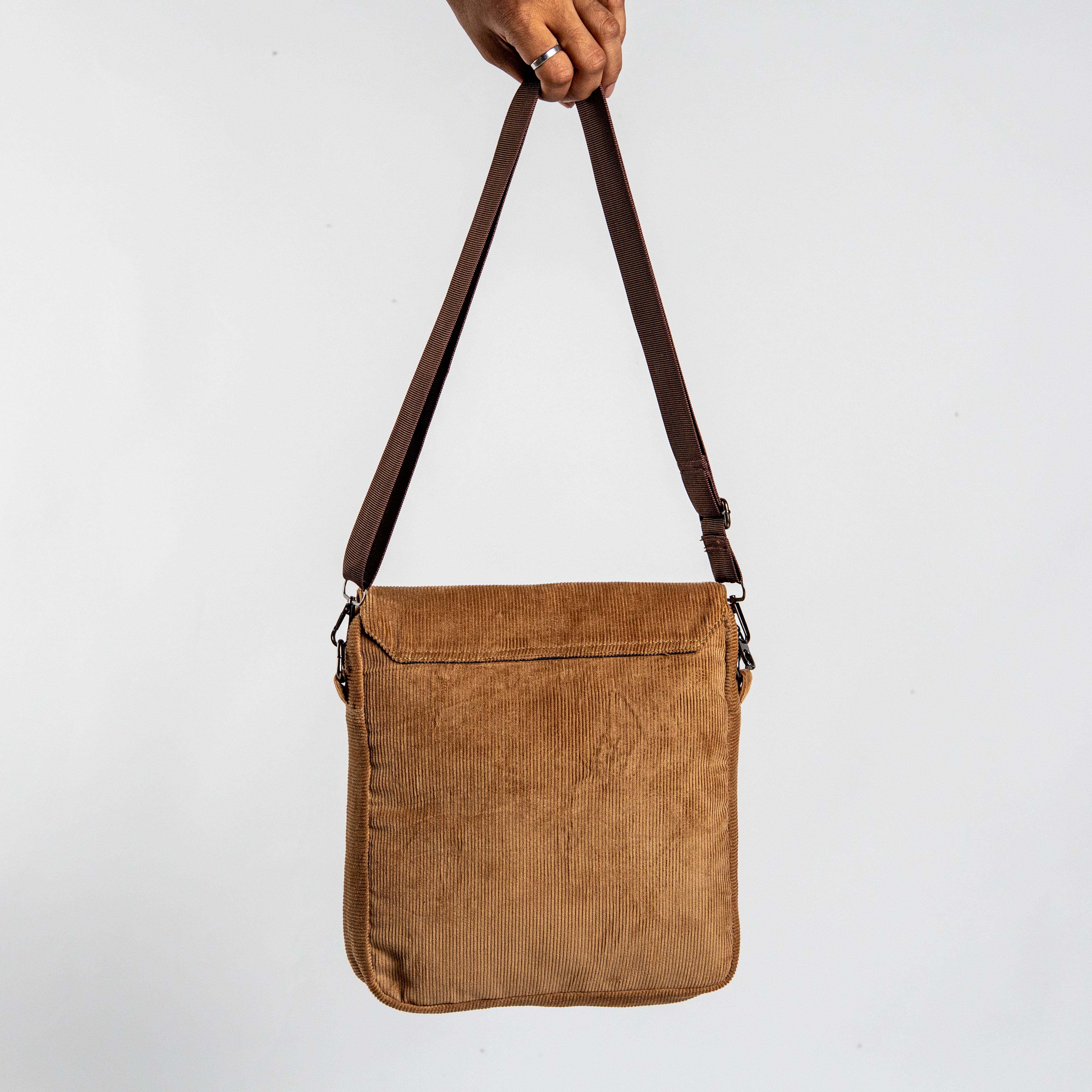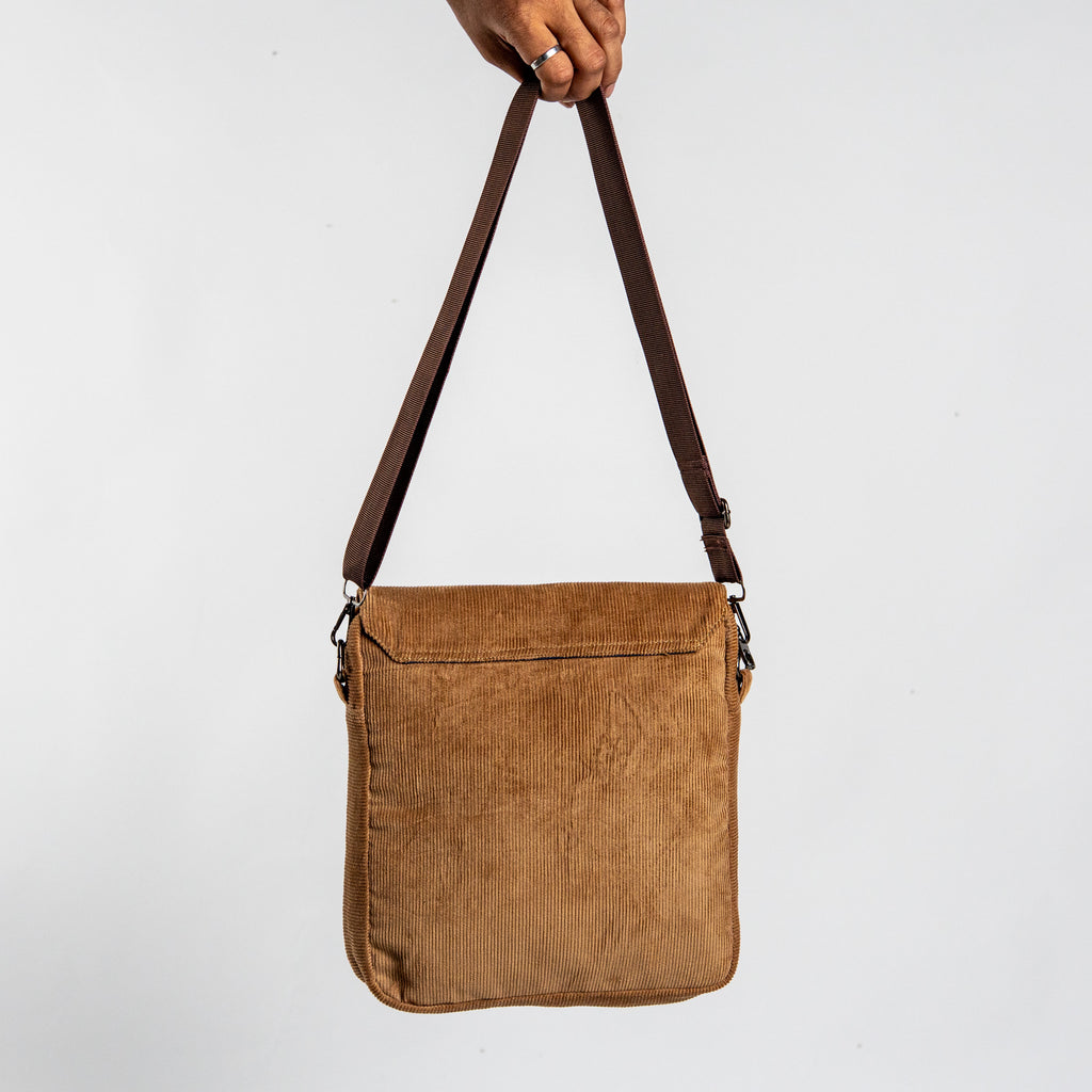 Sand Brown Corduroy Fabric Grid Cross Bag