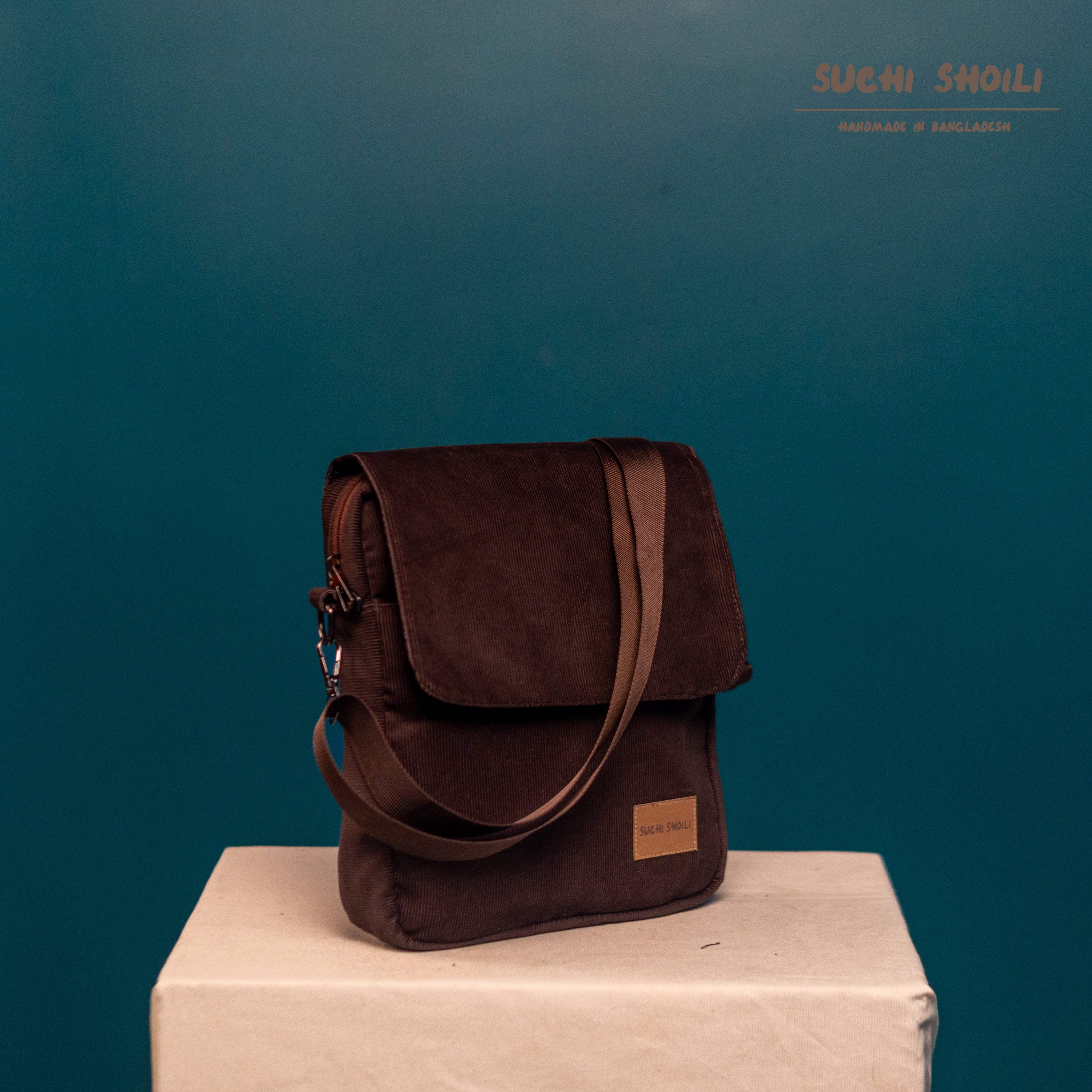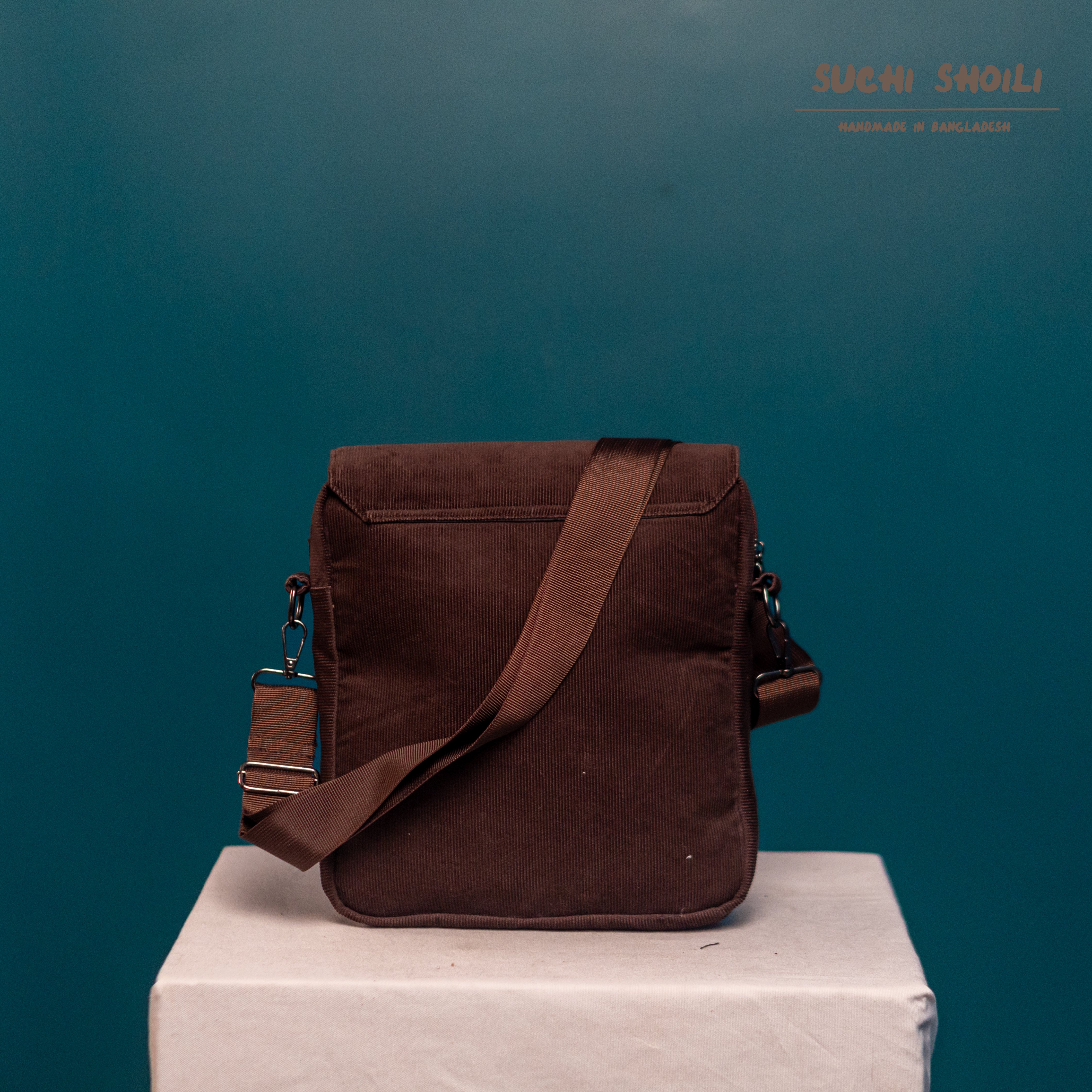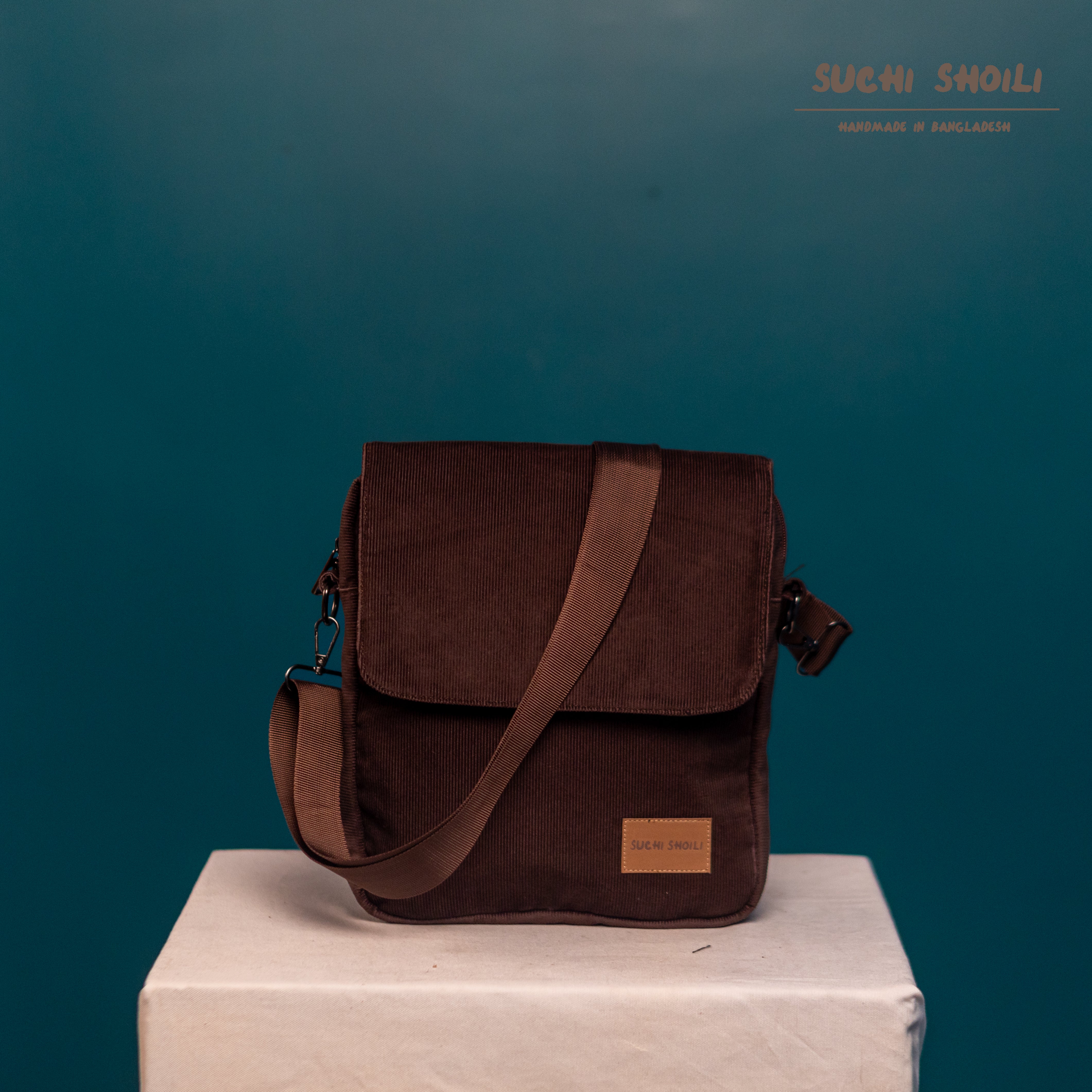 Orginal Coffee Corduroy Fabric Grid Cross Bag