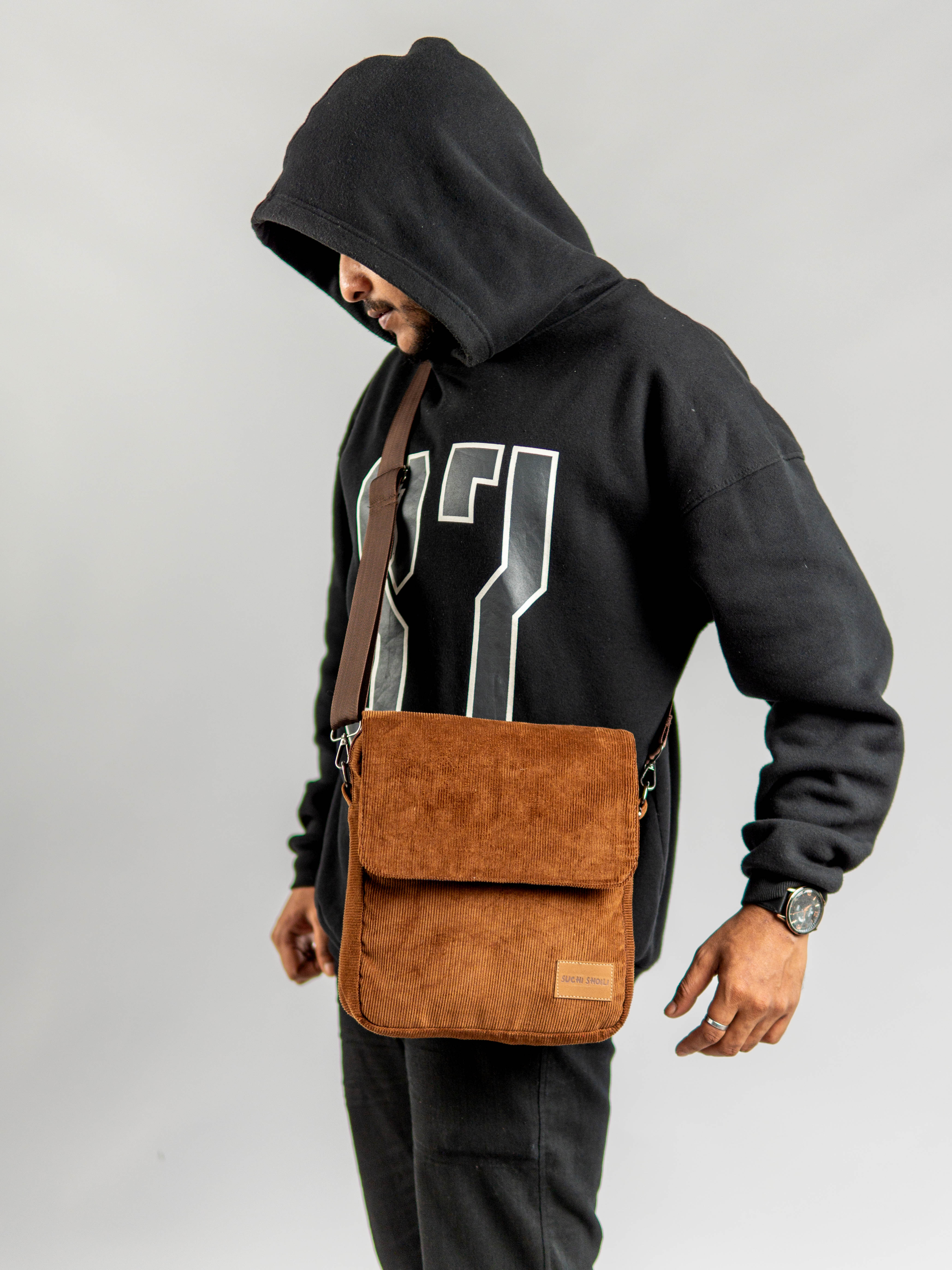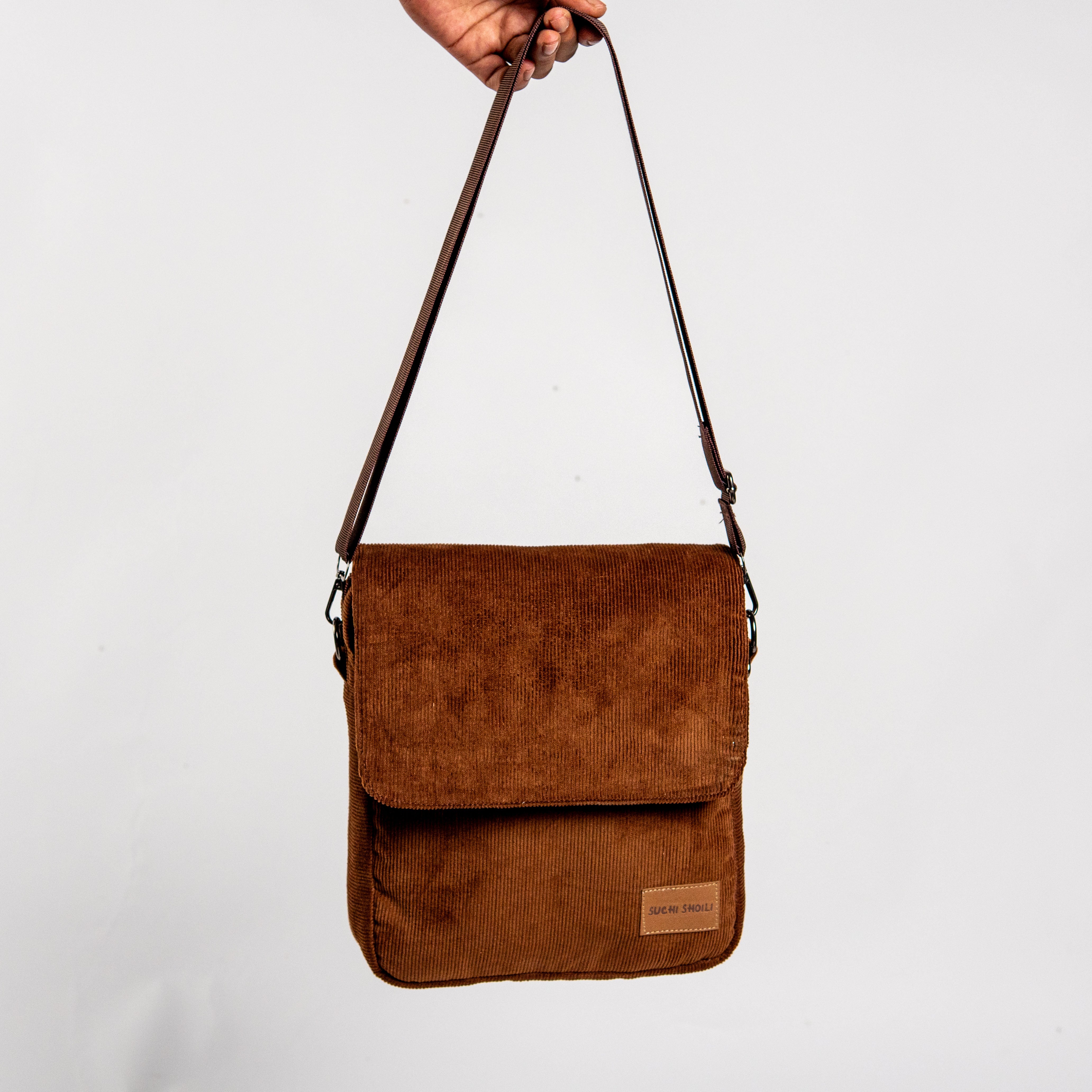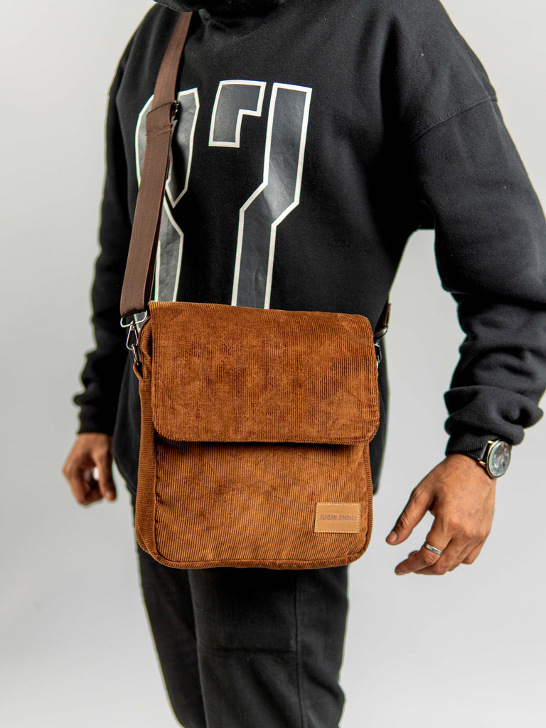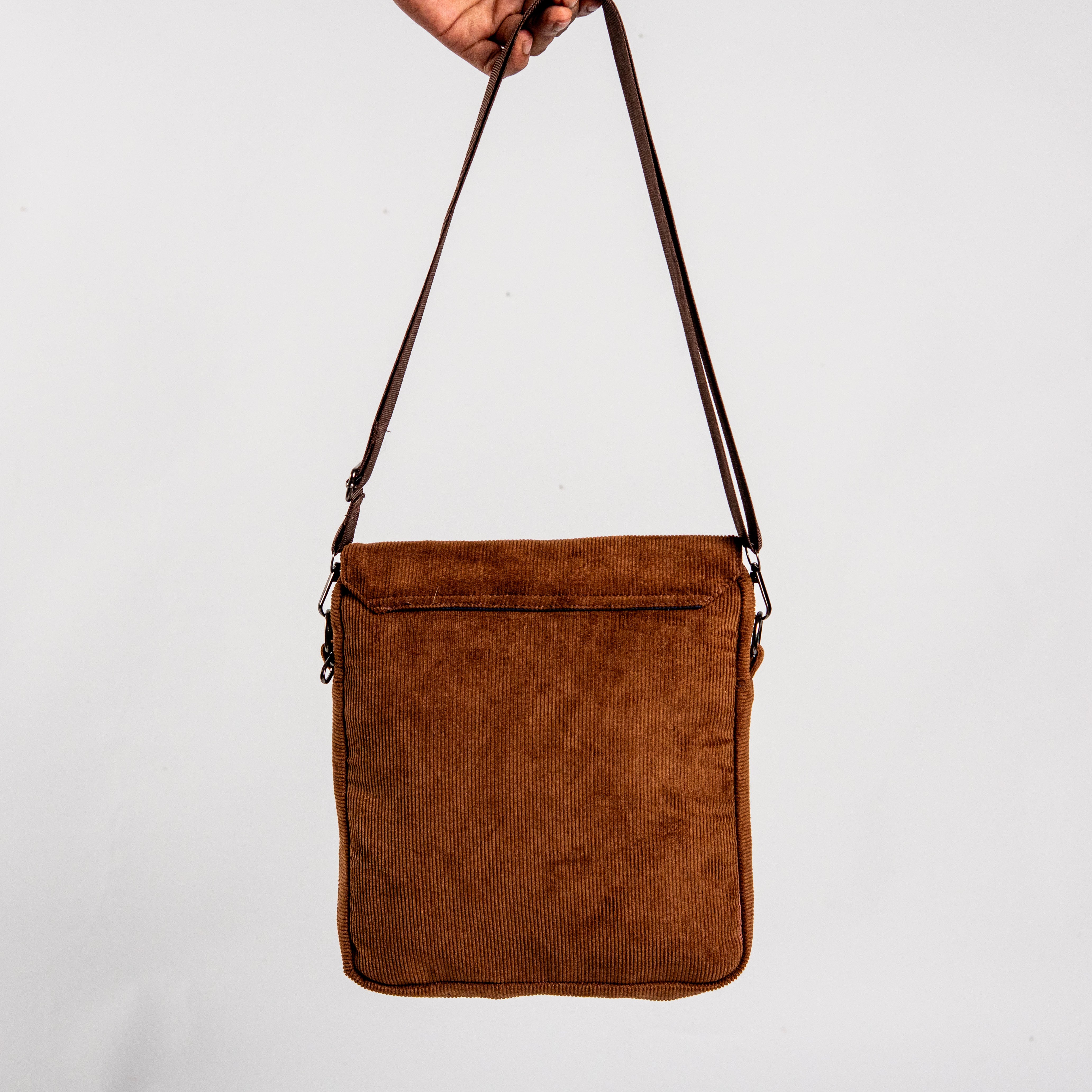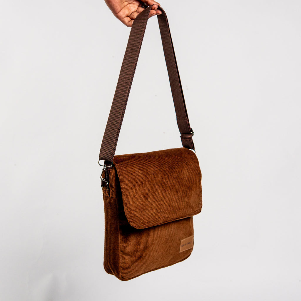 Chocolate Corduroy Fabric Grid Cross Bag