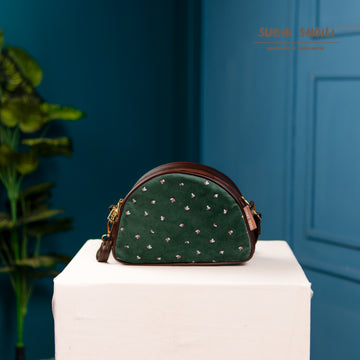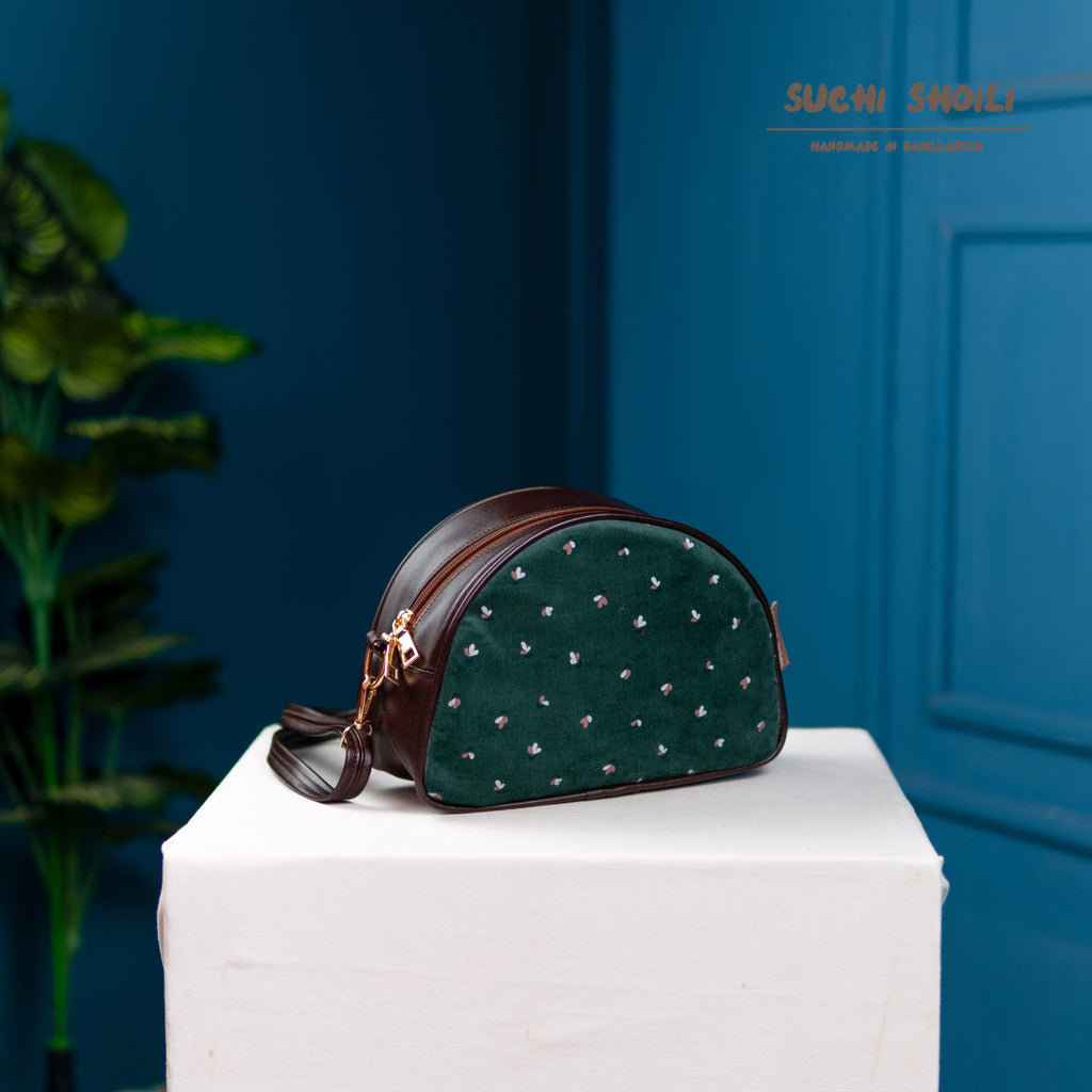 Drak Green Leaf Corduroy Fabric Half Moon Bag