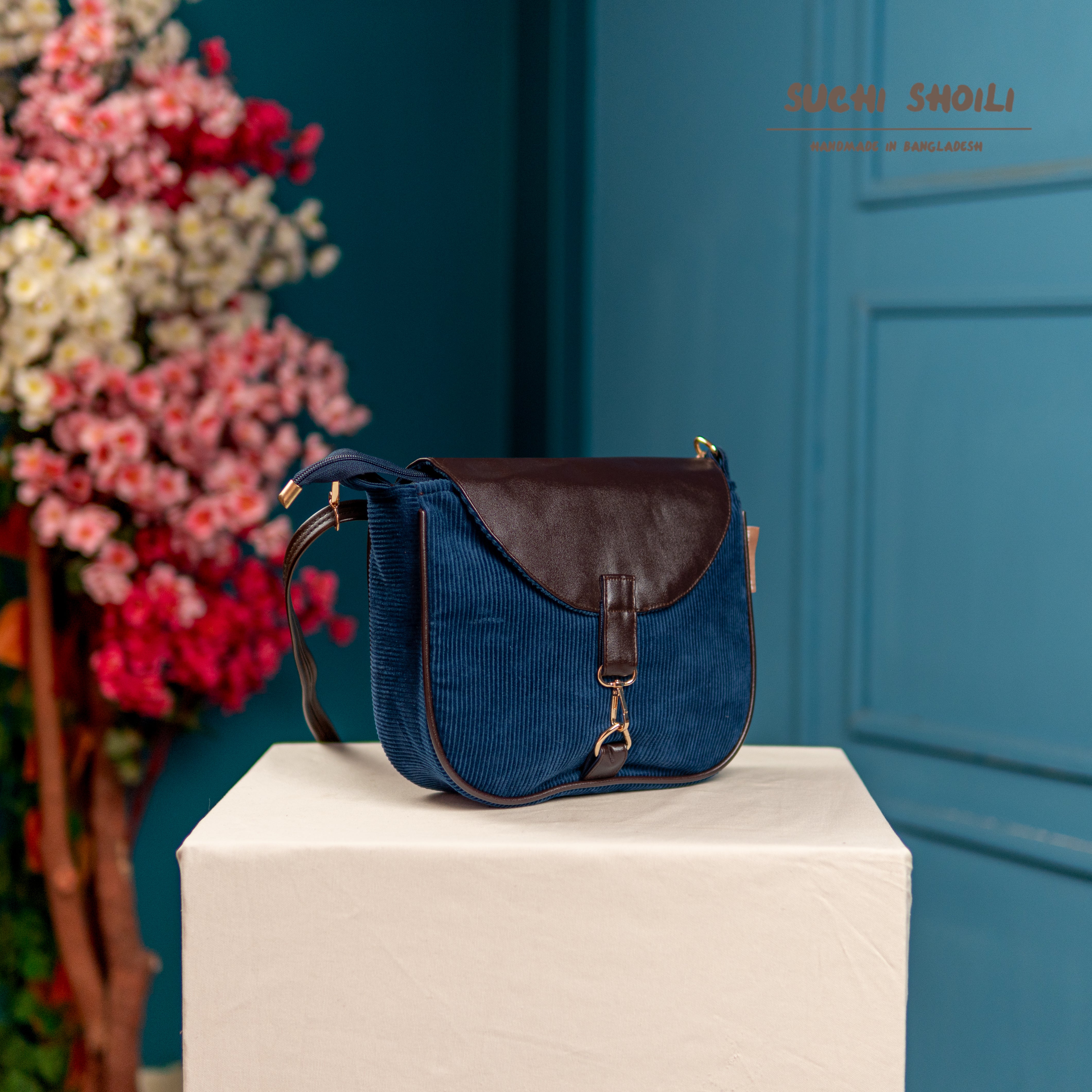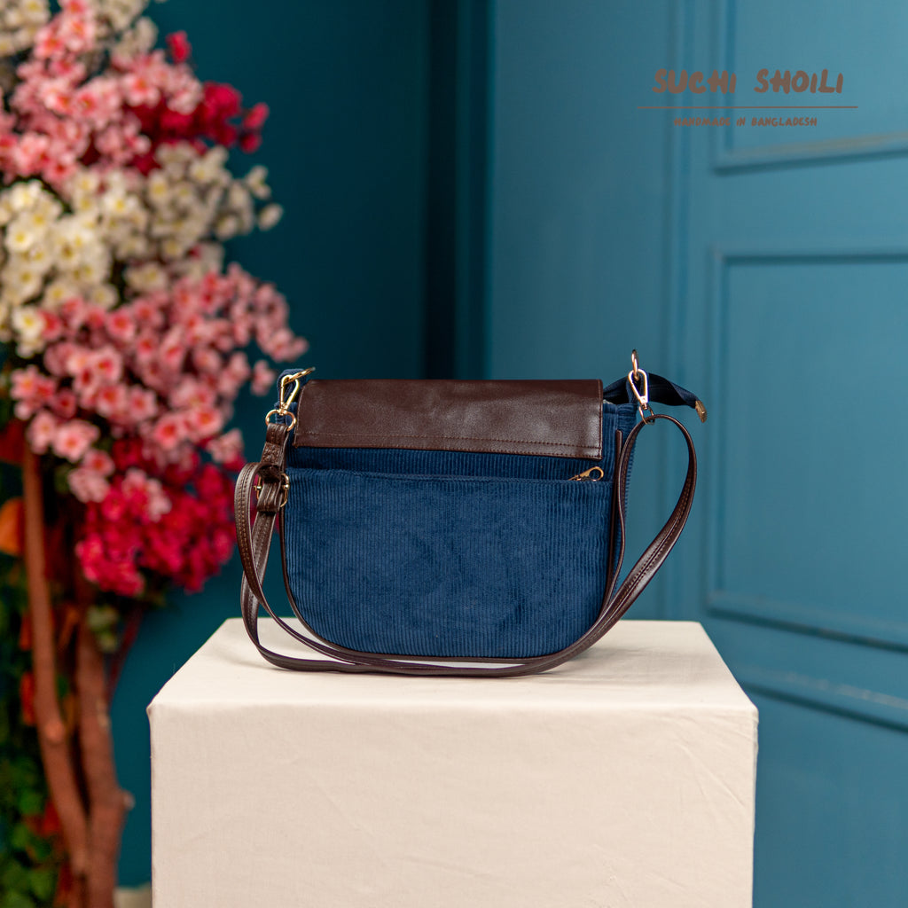 Dark Navy Bule Corduroy Fabric Helena Bag