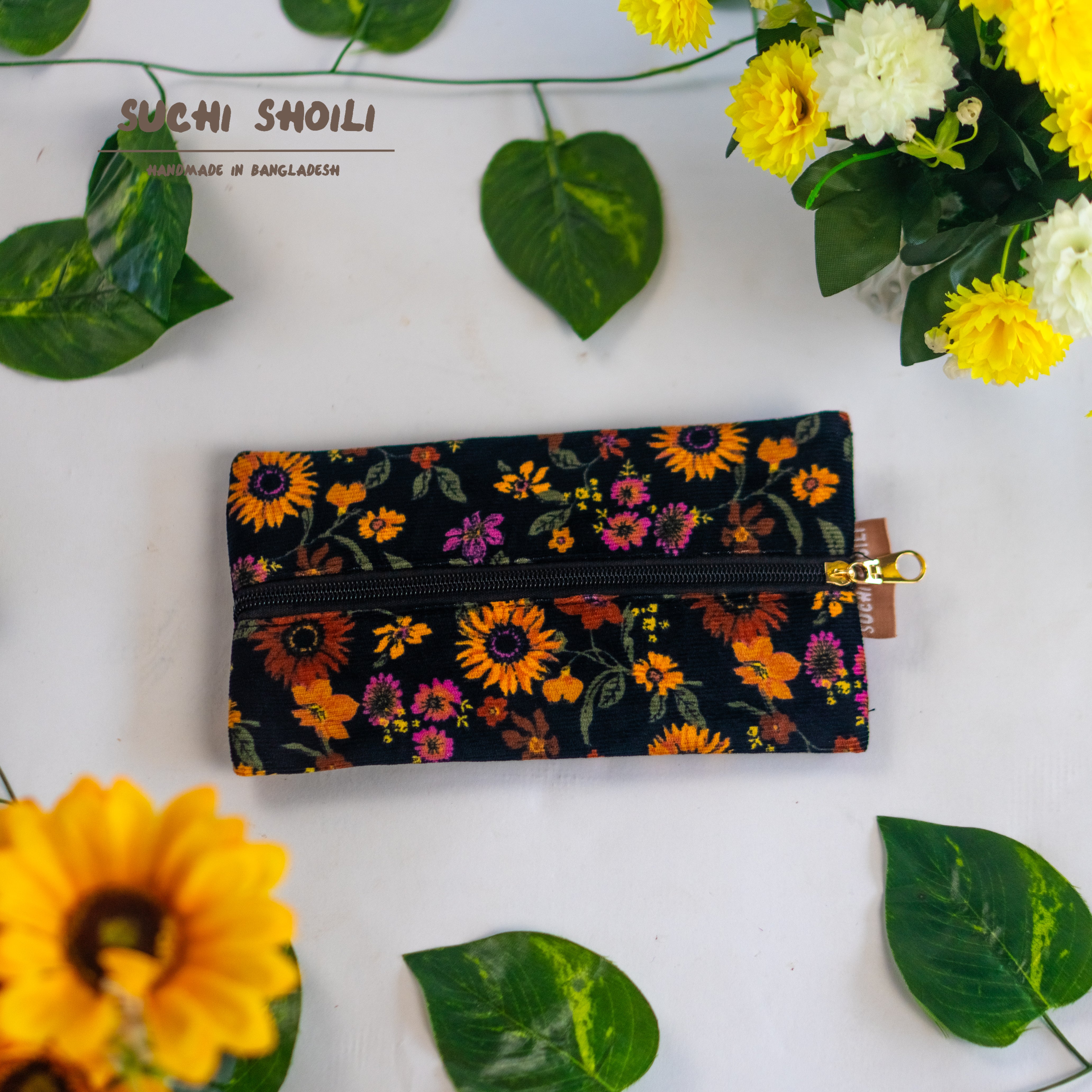 Sunflower Corduroy Fabric Ira Pencil Bag