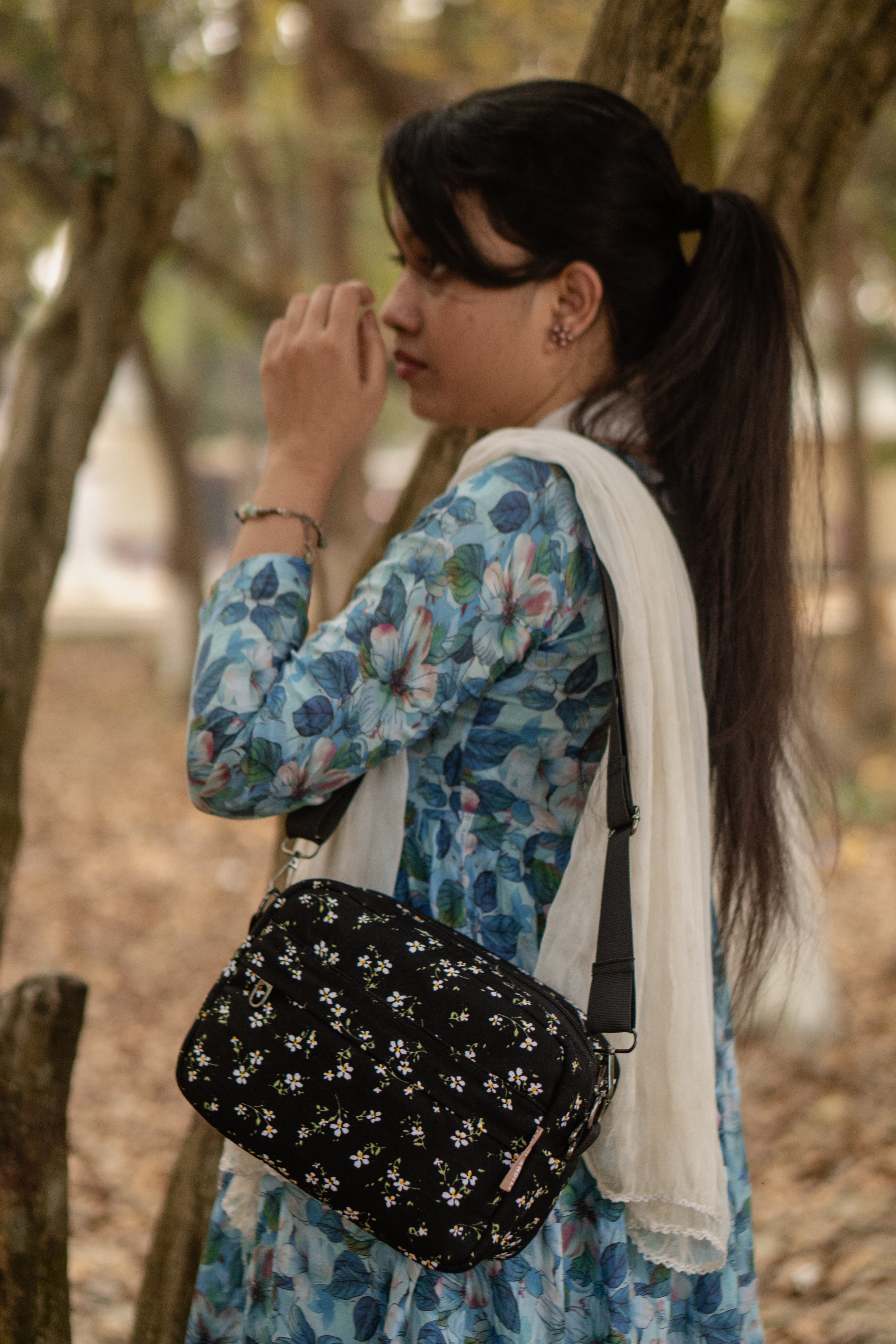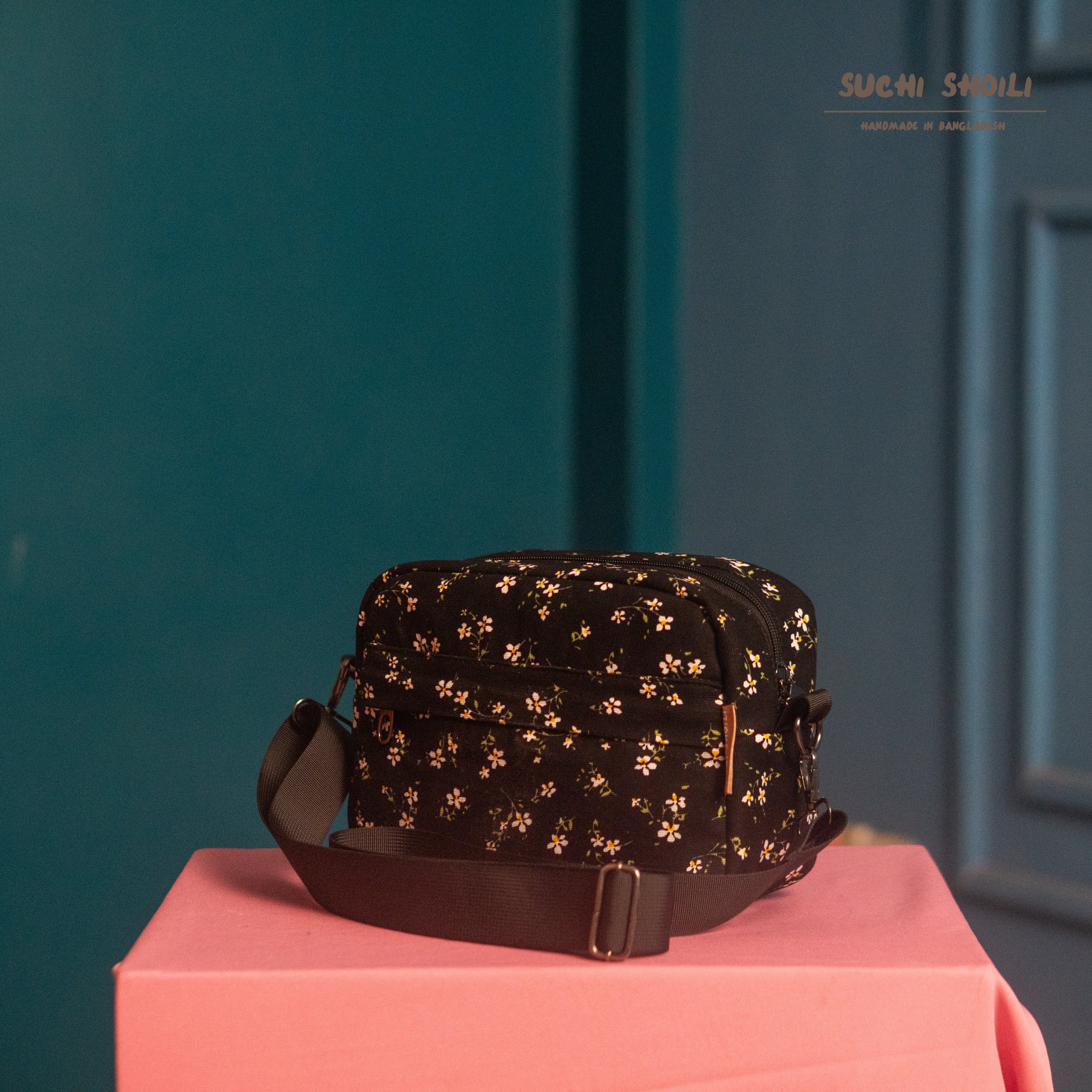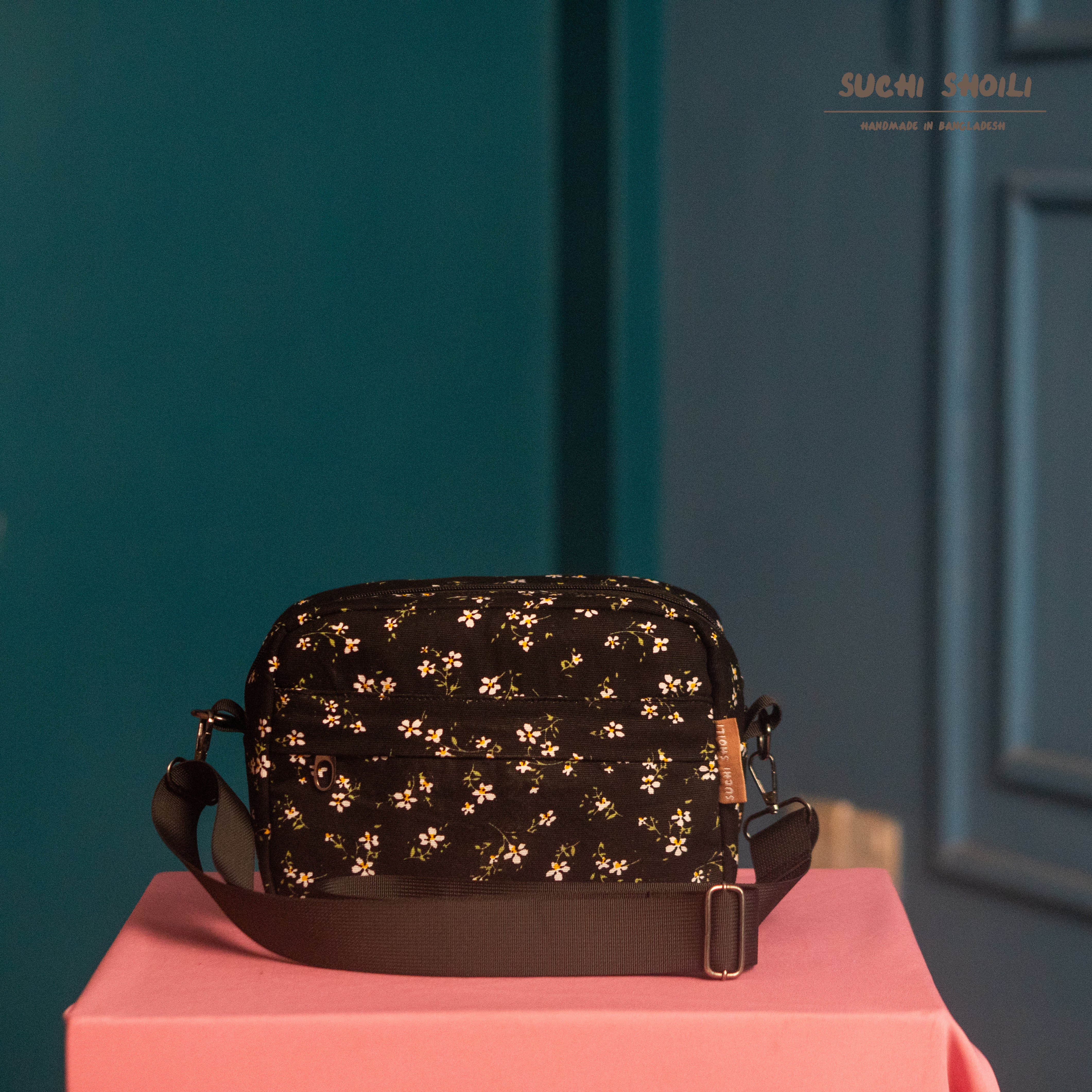 Black Ditsy Floral Lily Crossbody Bag