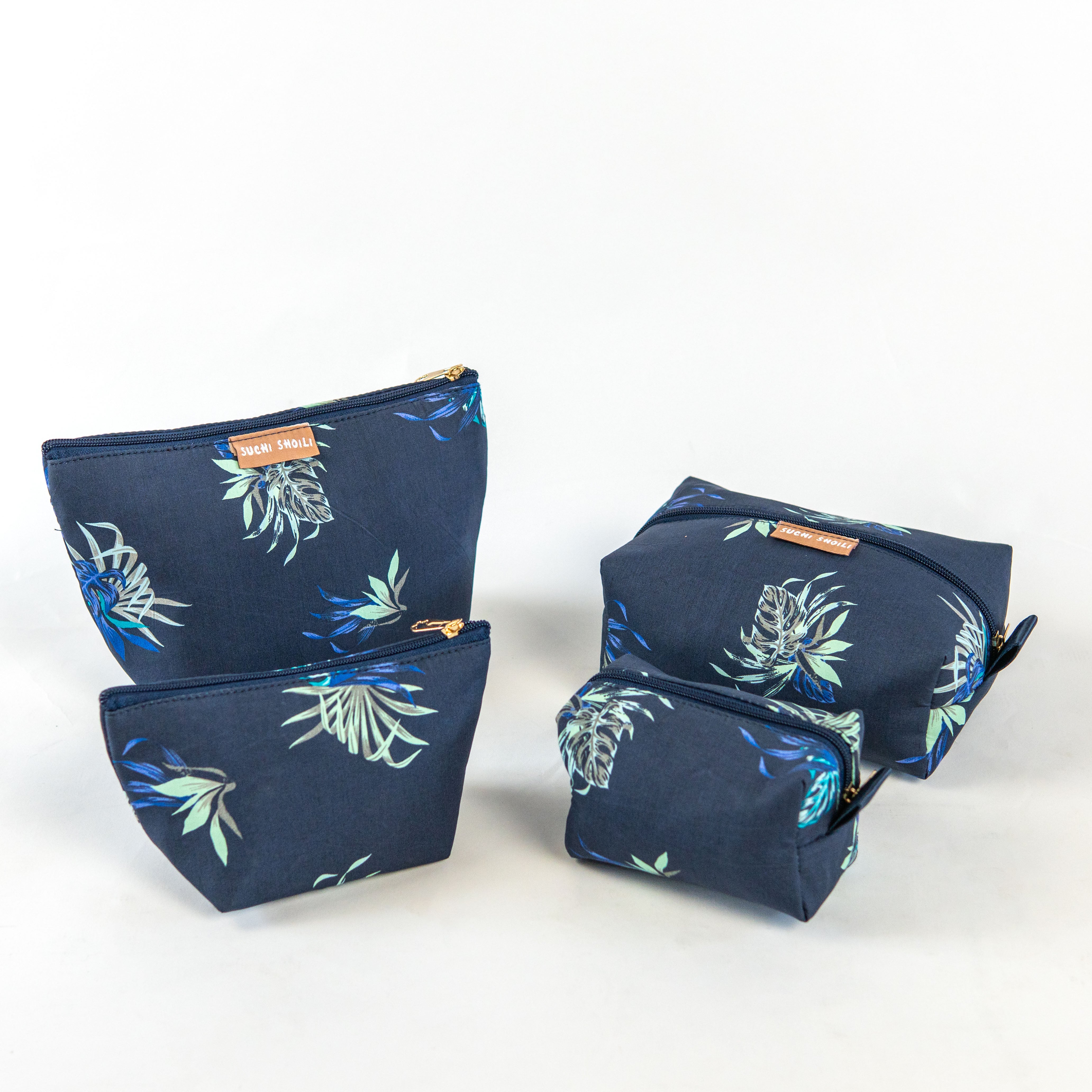 Blue Tropical Makeup Combo Pouch