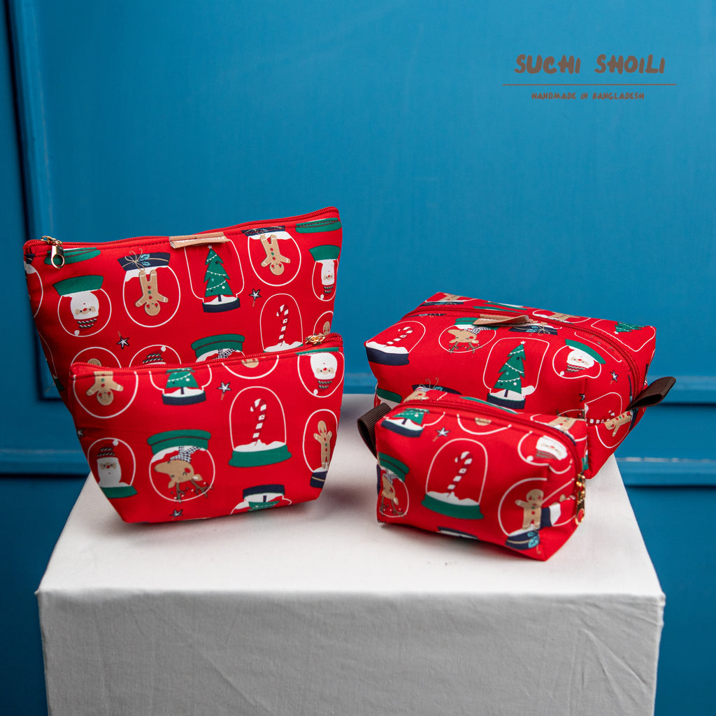 Red Frost Makeup Combo Pouch