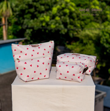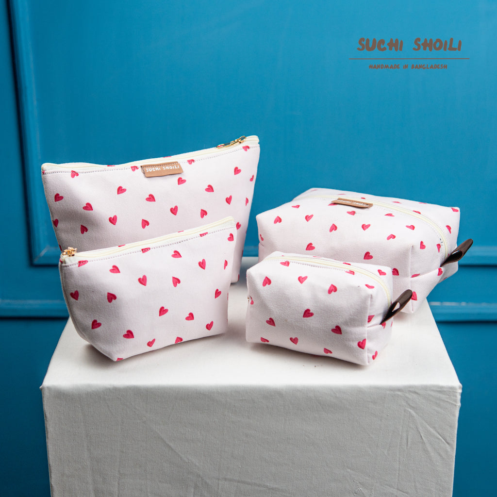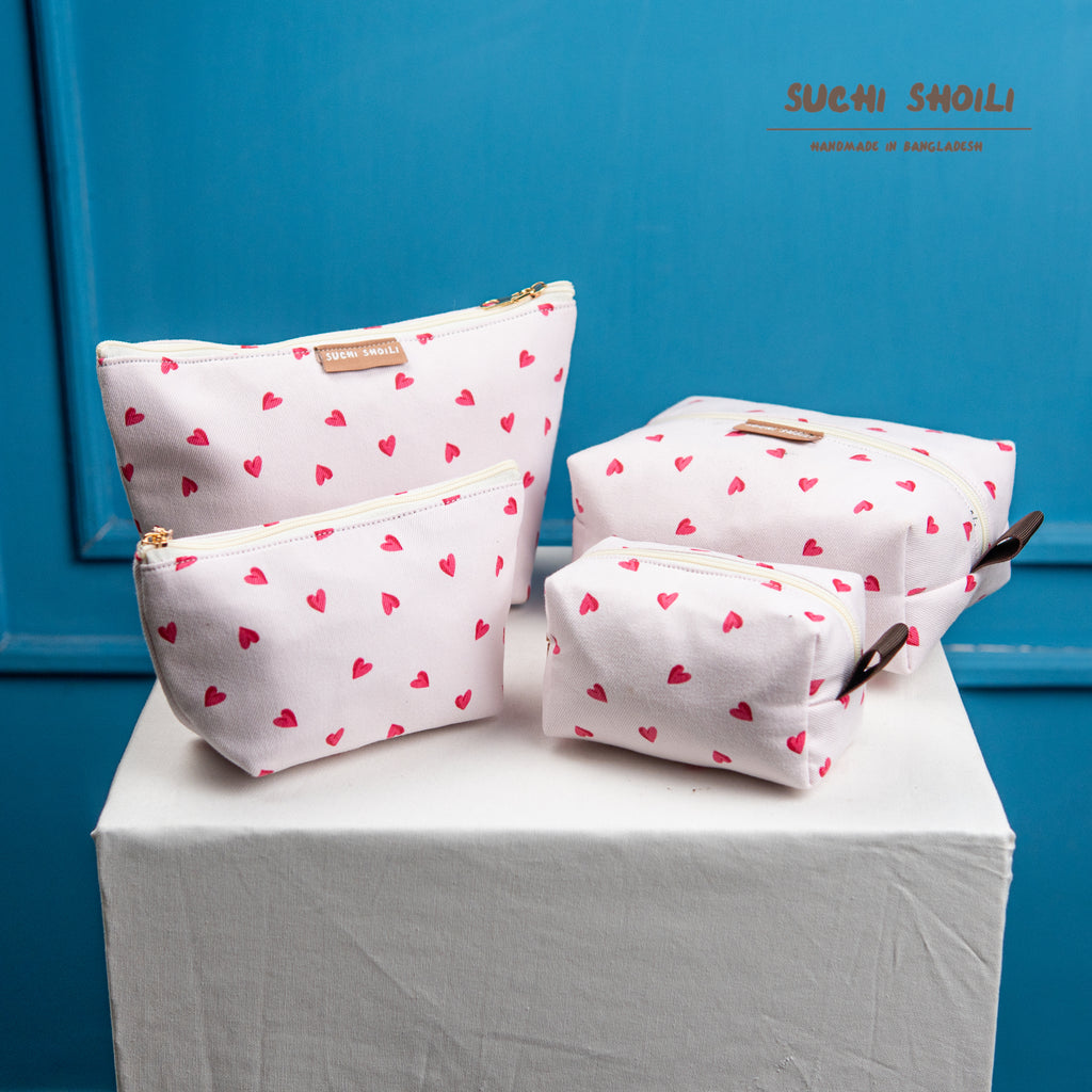 White Pink Love Makeup Combo Pouch