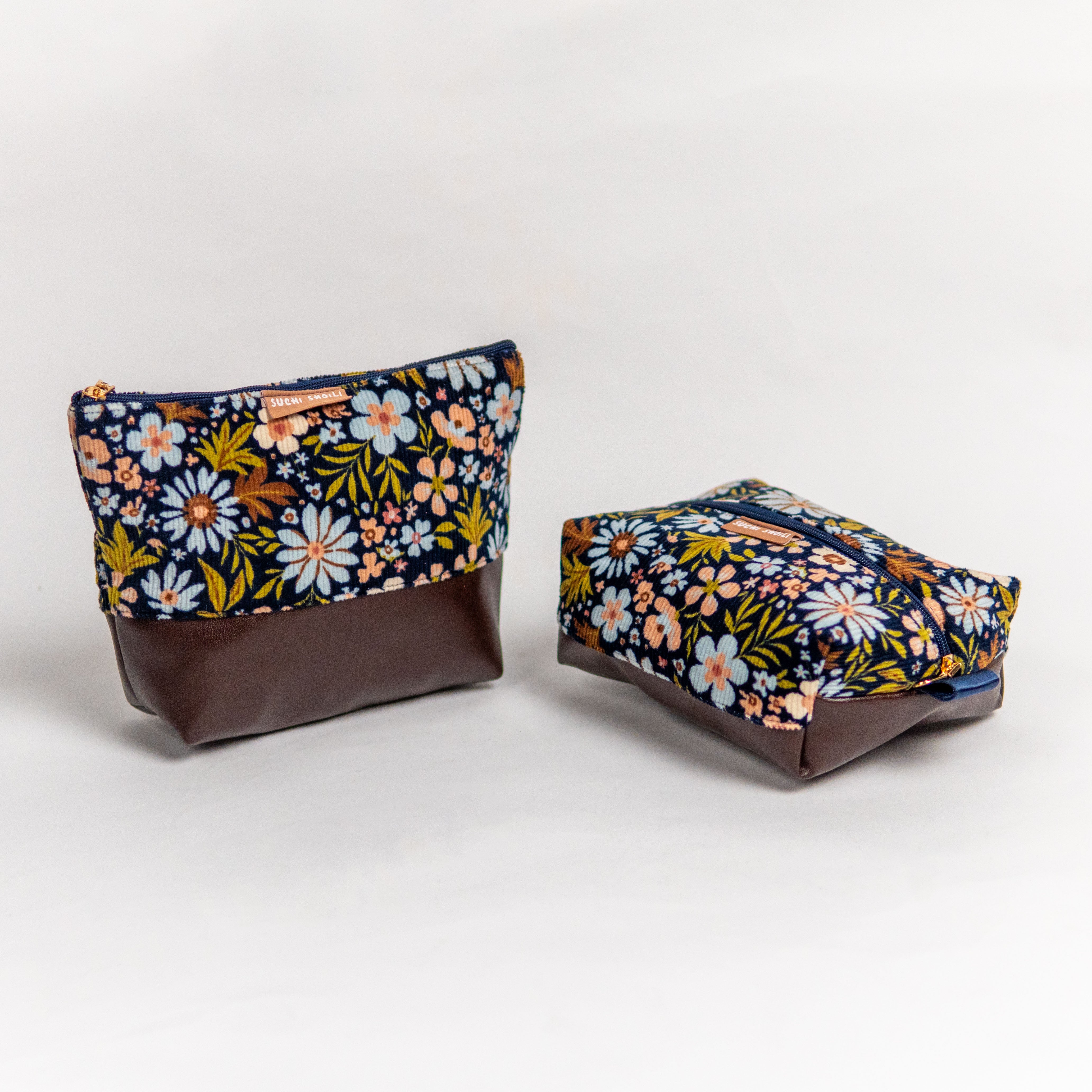 Dusky Bloom Corduroy Fabric Premium Makeup Bag