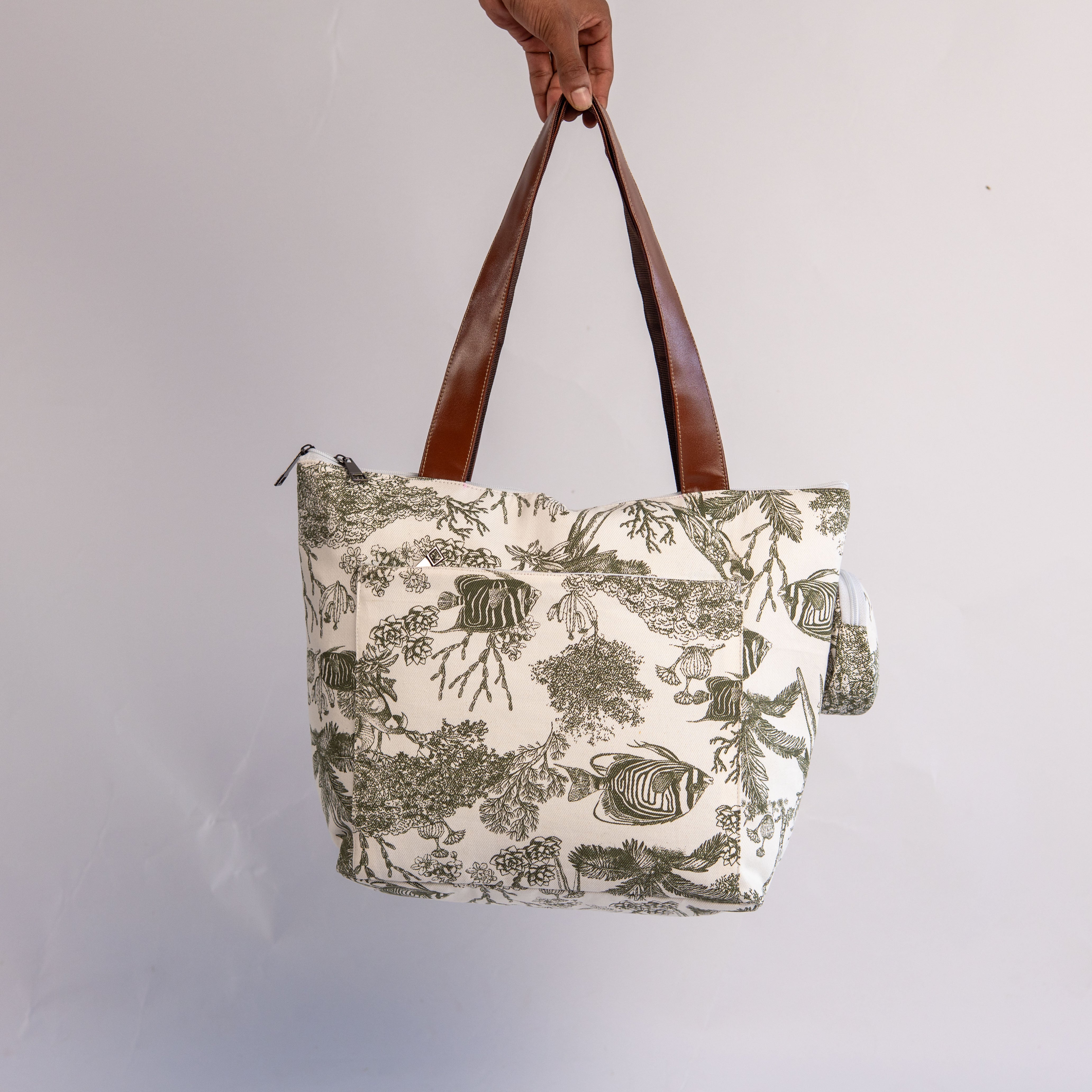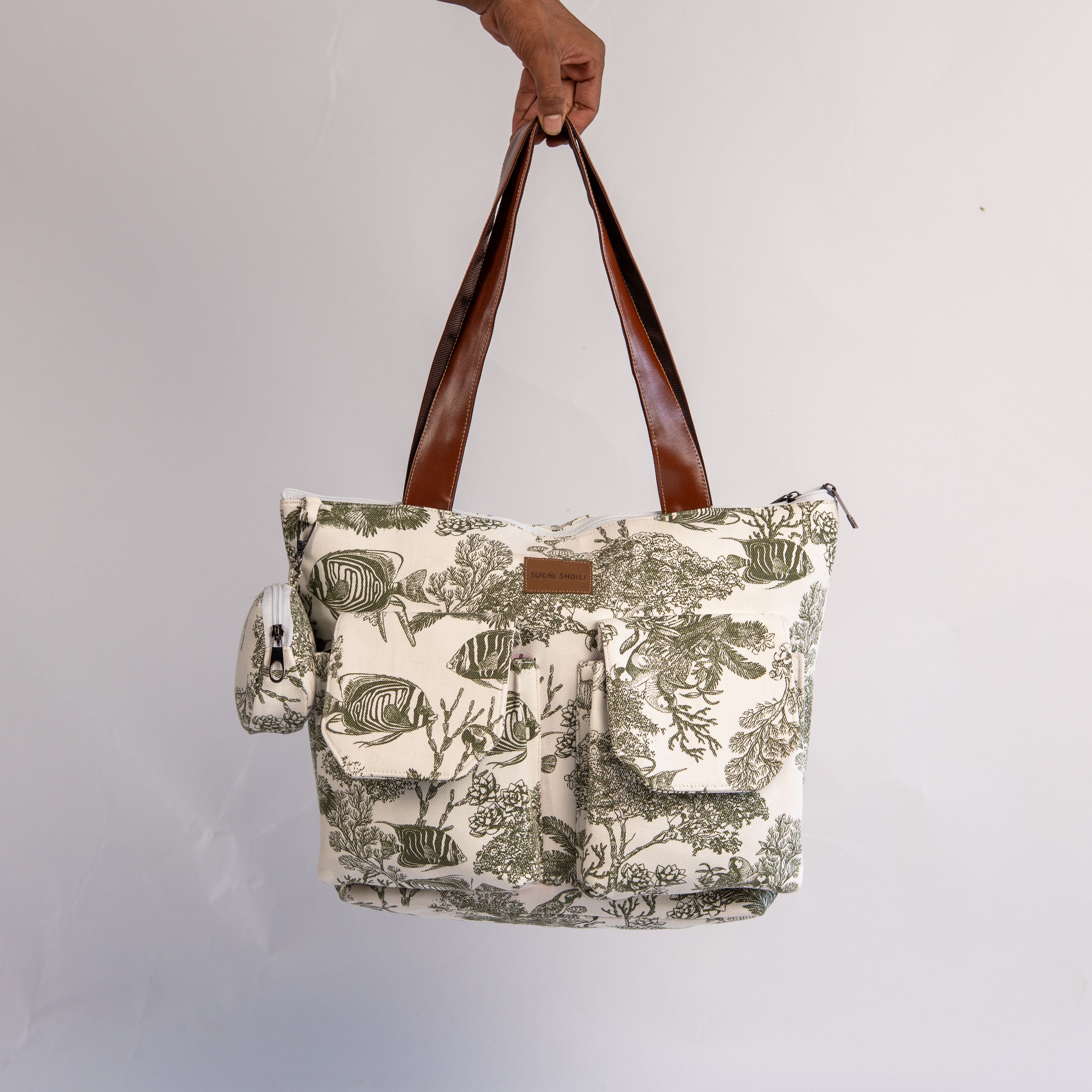 টোট ব্যাগের কালেকশনে নতুন সংযোজন। এই ব্যাগের সামনে দুইটি পকেট এবং পিছনে একটি চেইন পকেট আছে।ভিতরে দুইটি চেইন পকেট আছে।সাথে আছে একটি কমপ্লিমেন্টারি গিফট হিসেবে কয়েন পাউচ।