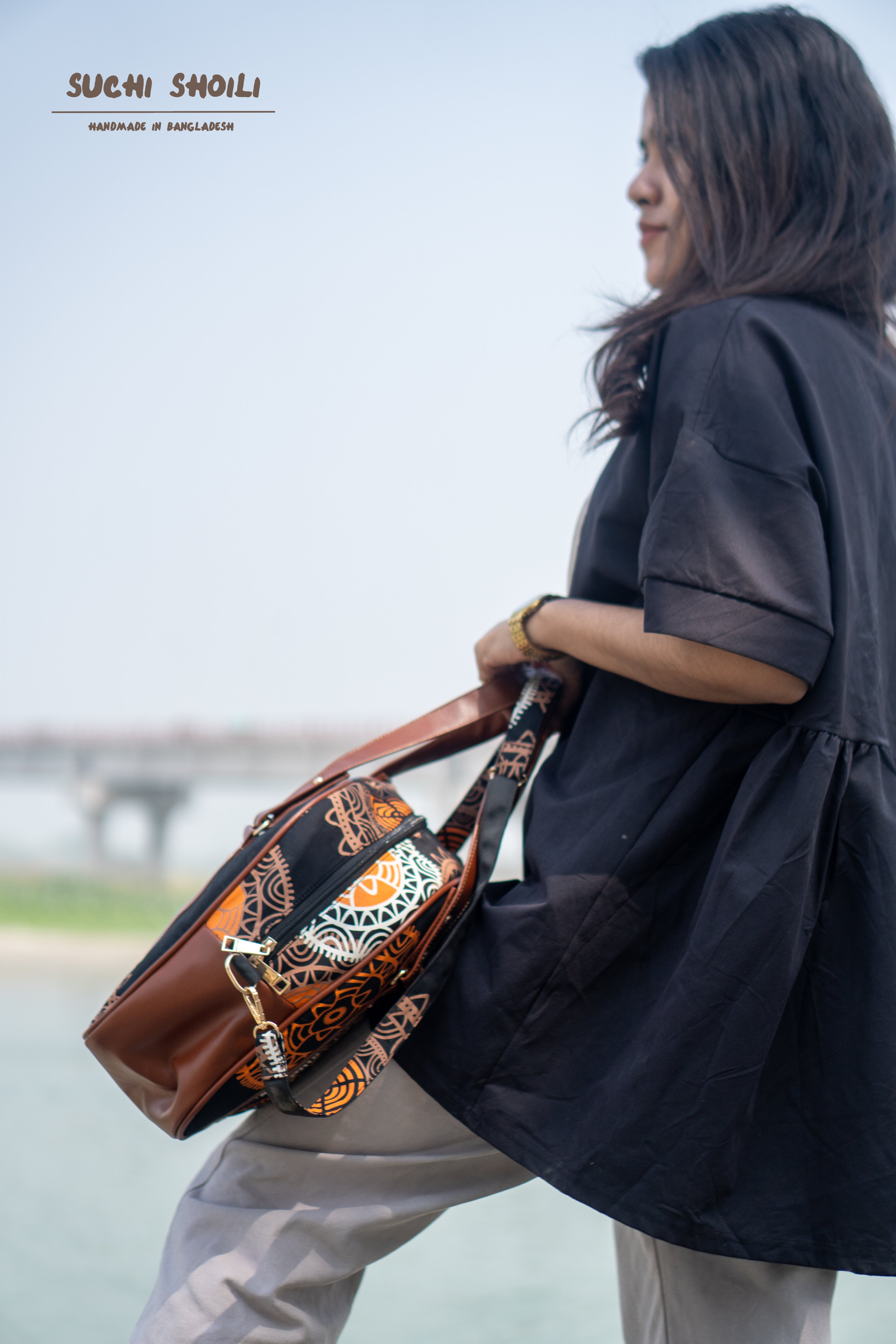ফ্যাব্রিক আর আর্টিফিশিয়াল লেদারের তৈরী এই ব্যাগটি একই সাথে ট্রেন্ডি এবং দেশি। অফিস, ভার্সিটি তে রেগুলার ইউজ এর জন্য এই ব্যাগটি "মাস্ট হ্যাভ"