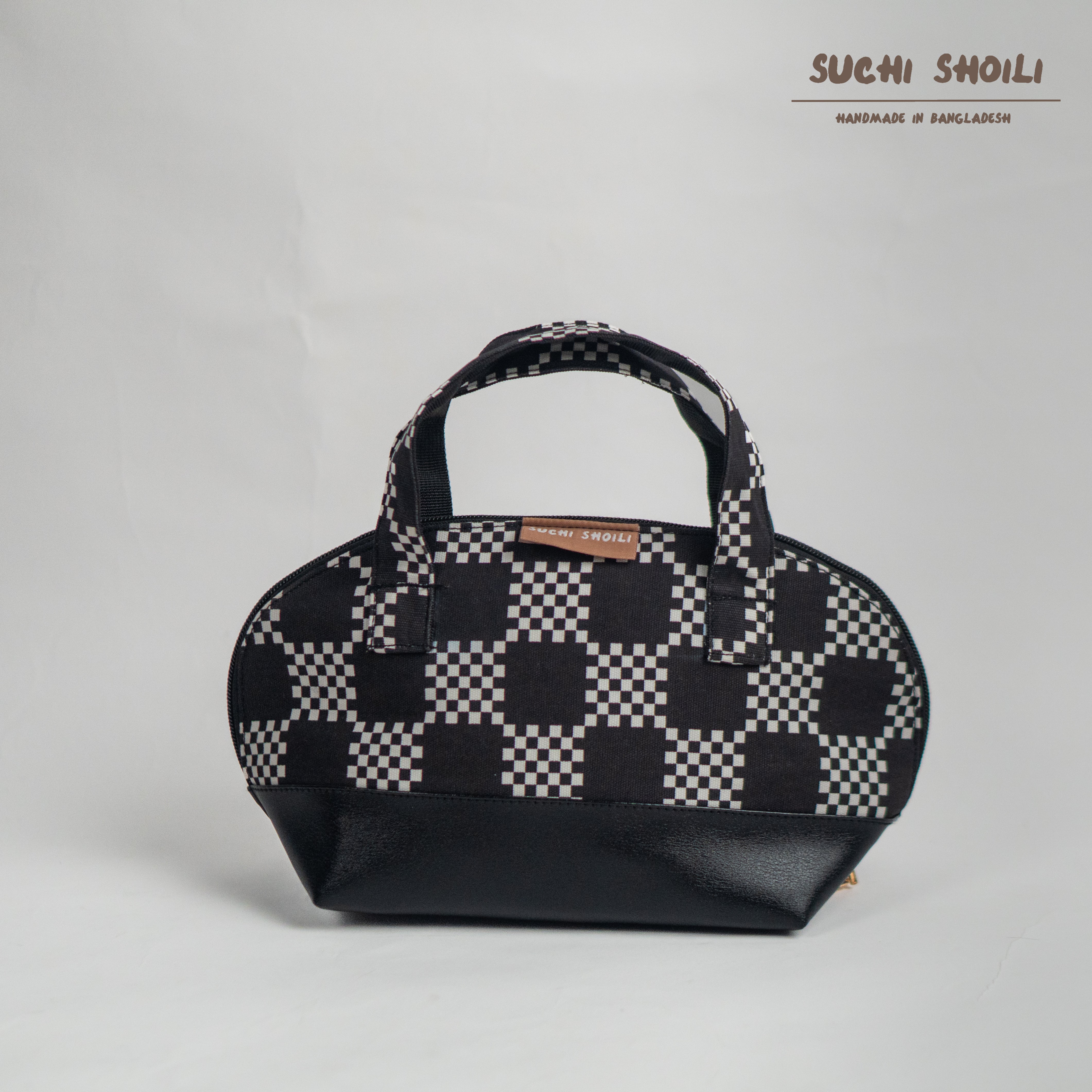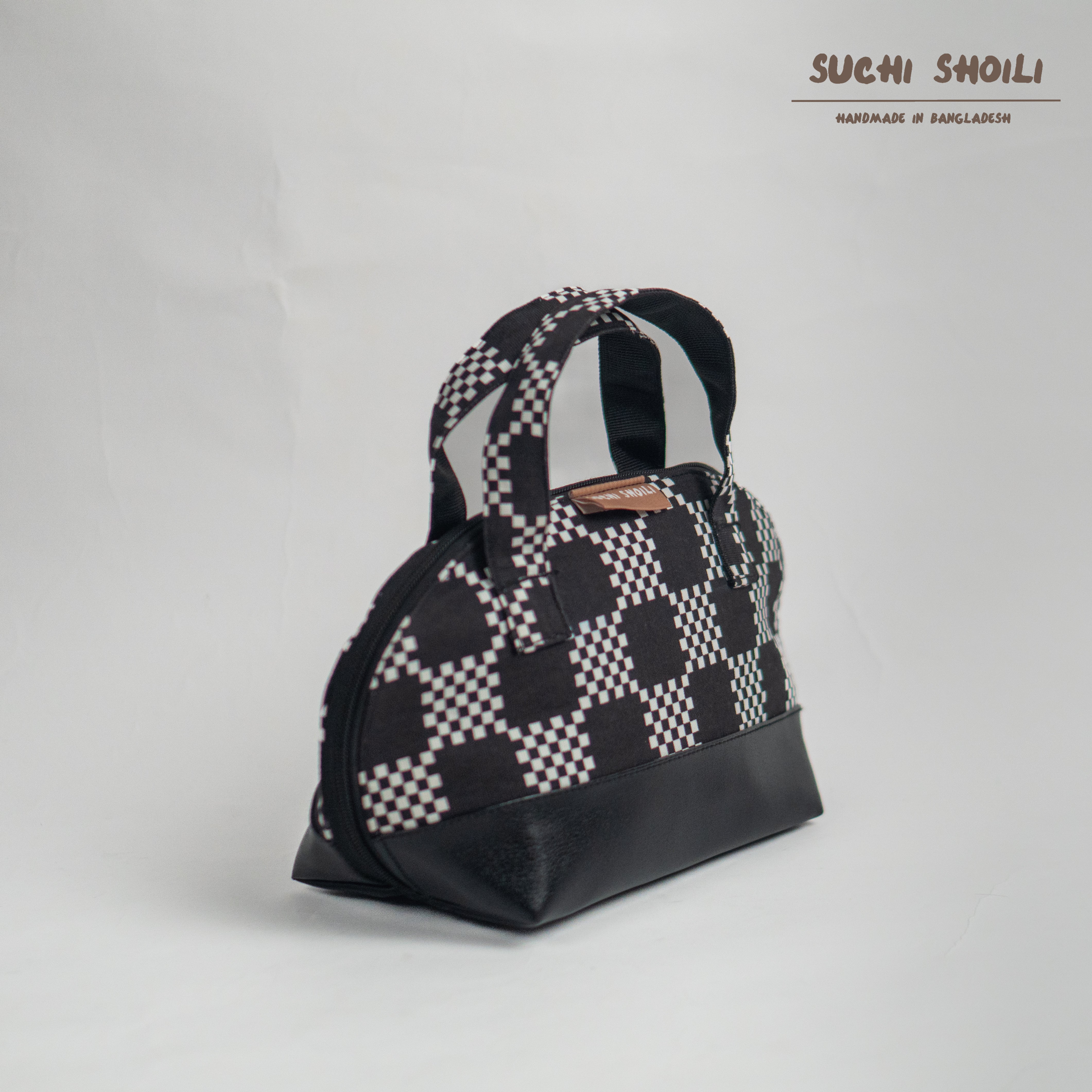 Check Board Round Makeup Bag