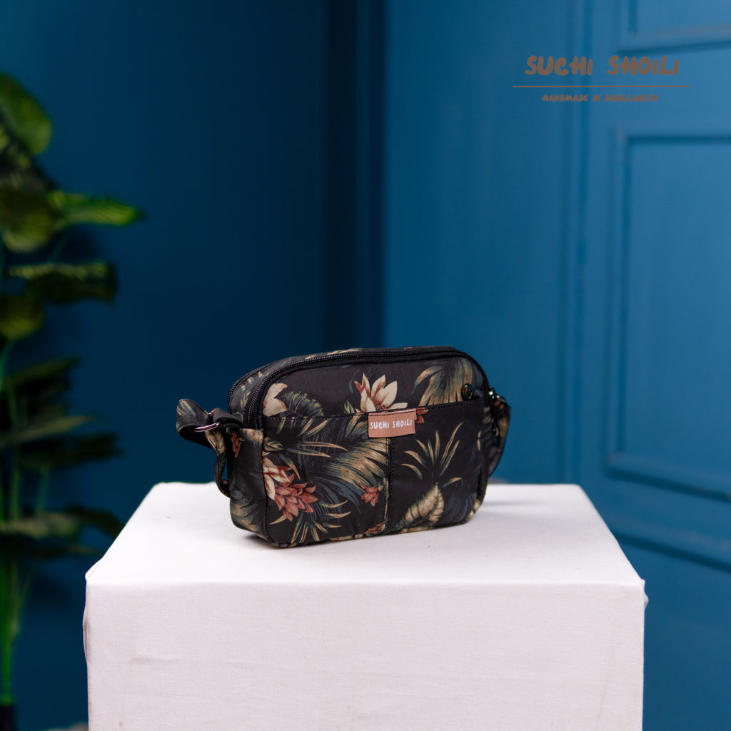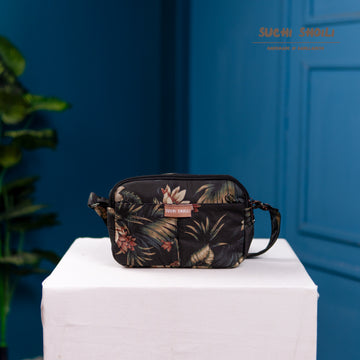 Tropical Bige Flower Rupa Double Chamber Crossbody Bag