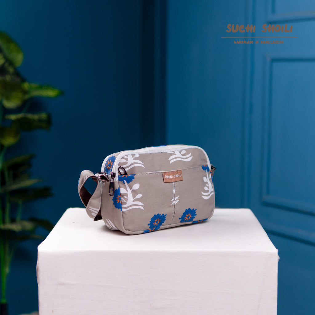 White n Blue Flower Pattern Rupa Double Chamber Crossbody Bag