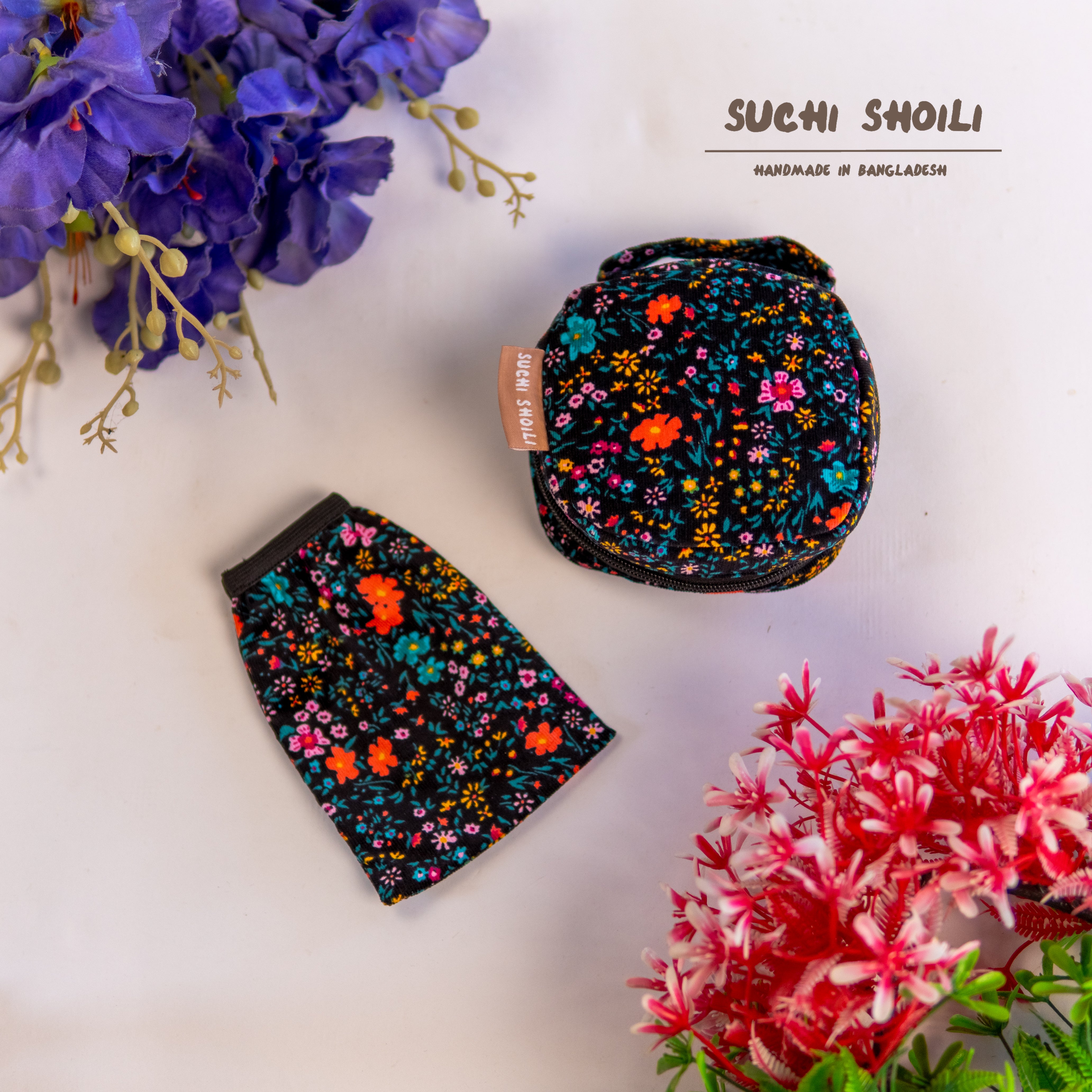 Multi Daisy Corduroy Fabric Sanitary Napkin Pouch
