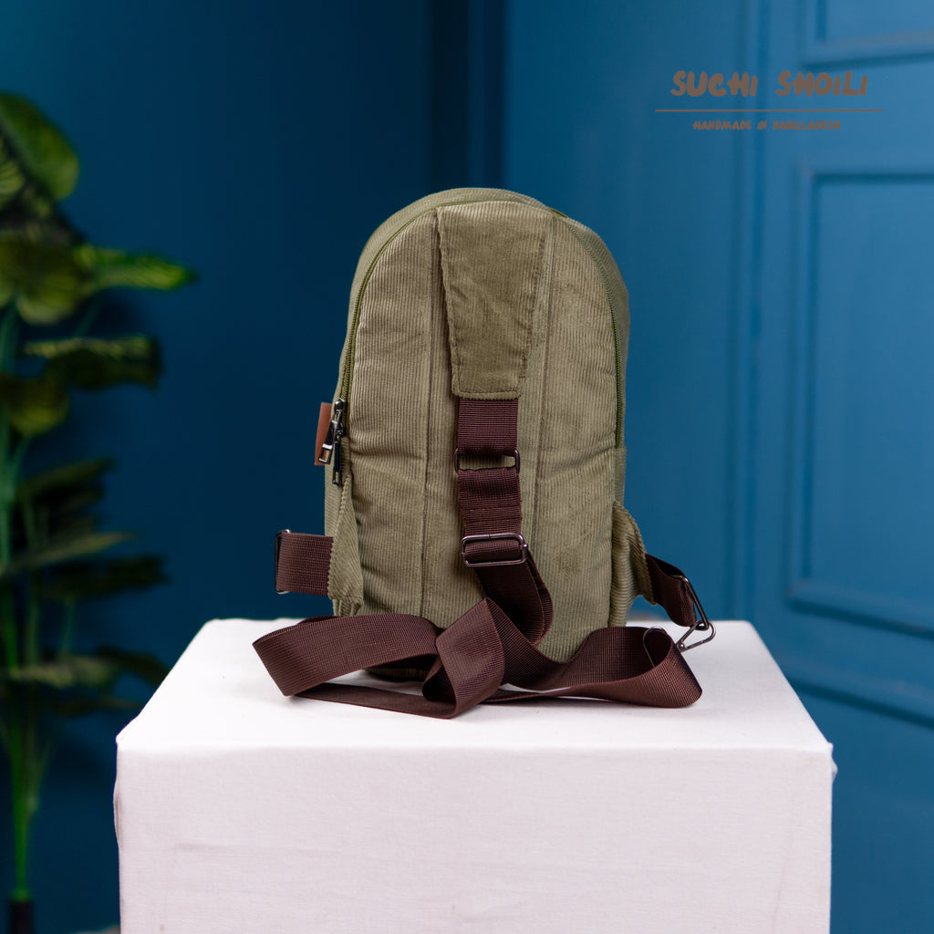 Ash Olive Corduroy Fabric Sling Bag