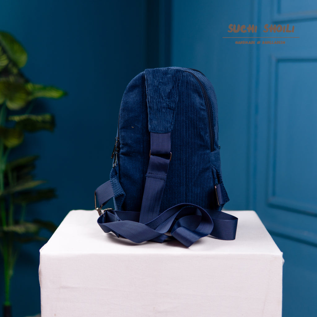 Dark Navy Bule Corduroy Fabric Sling Bag