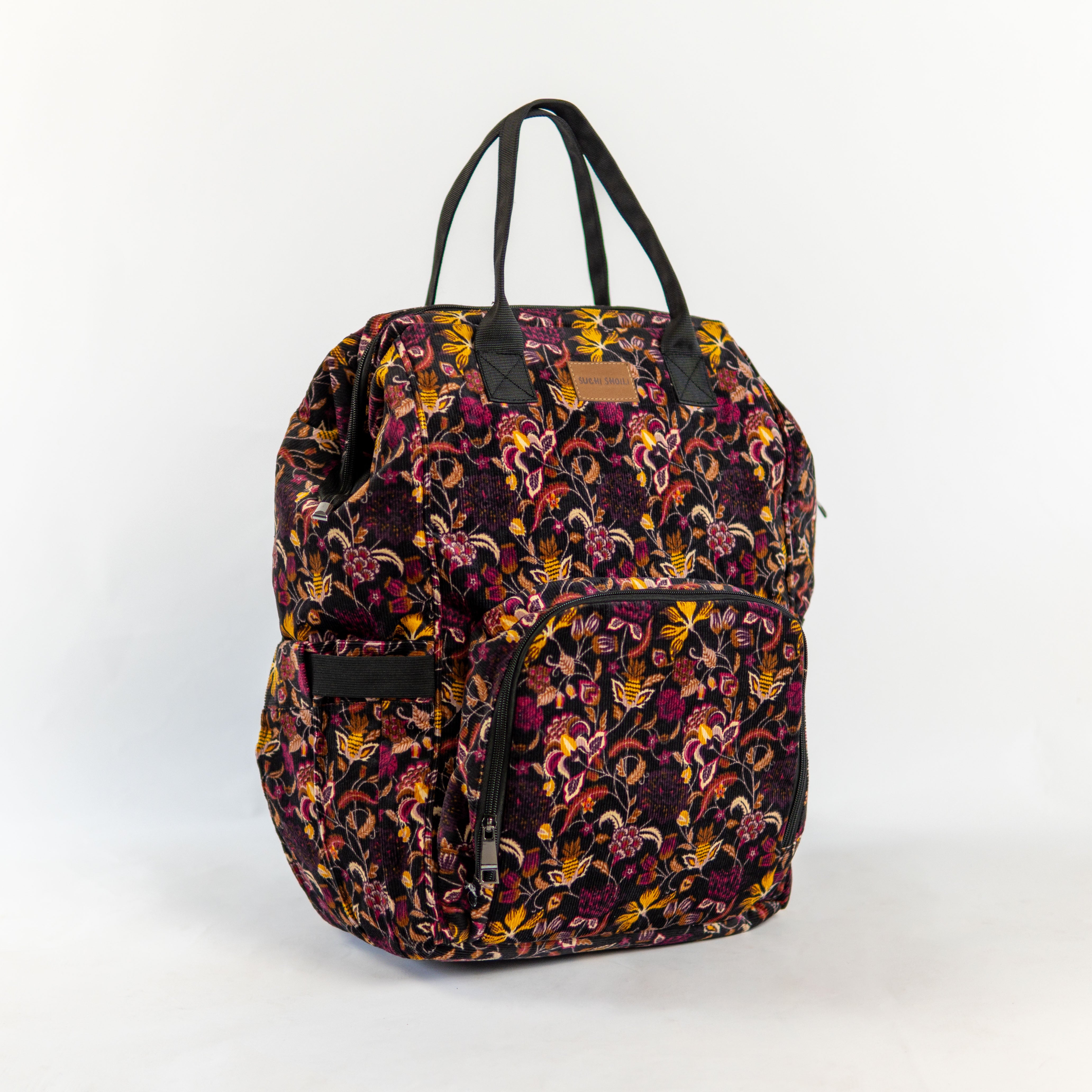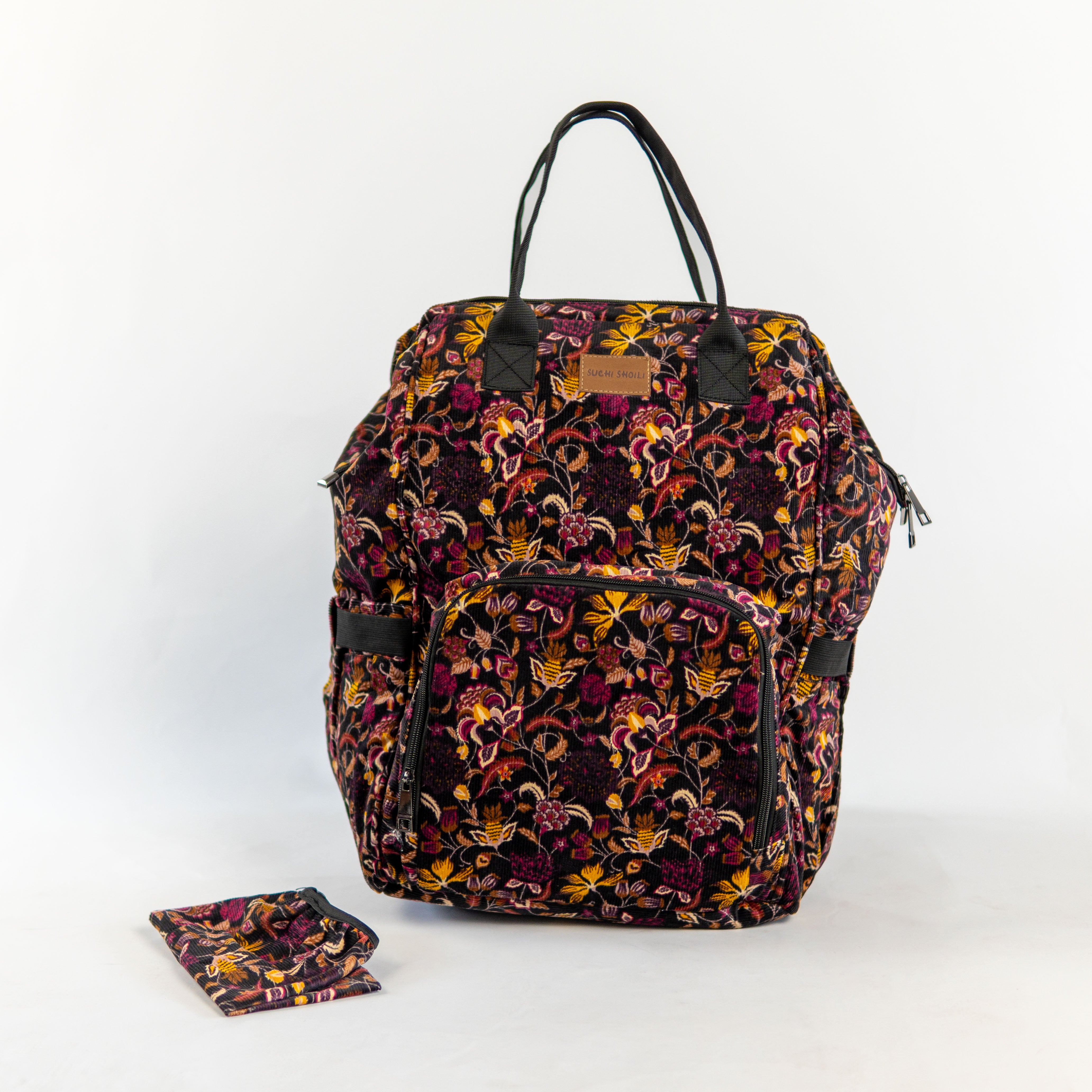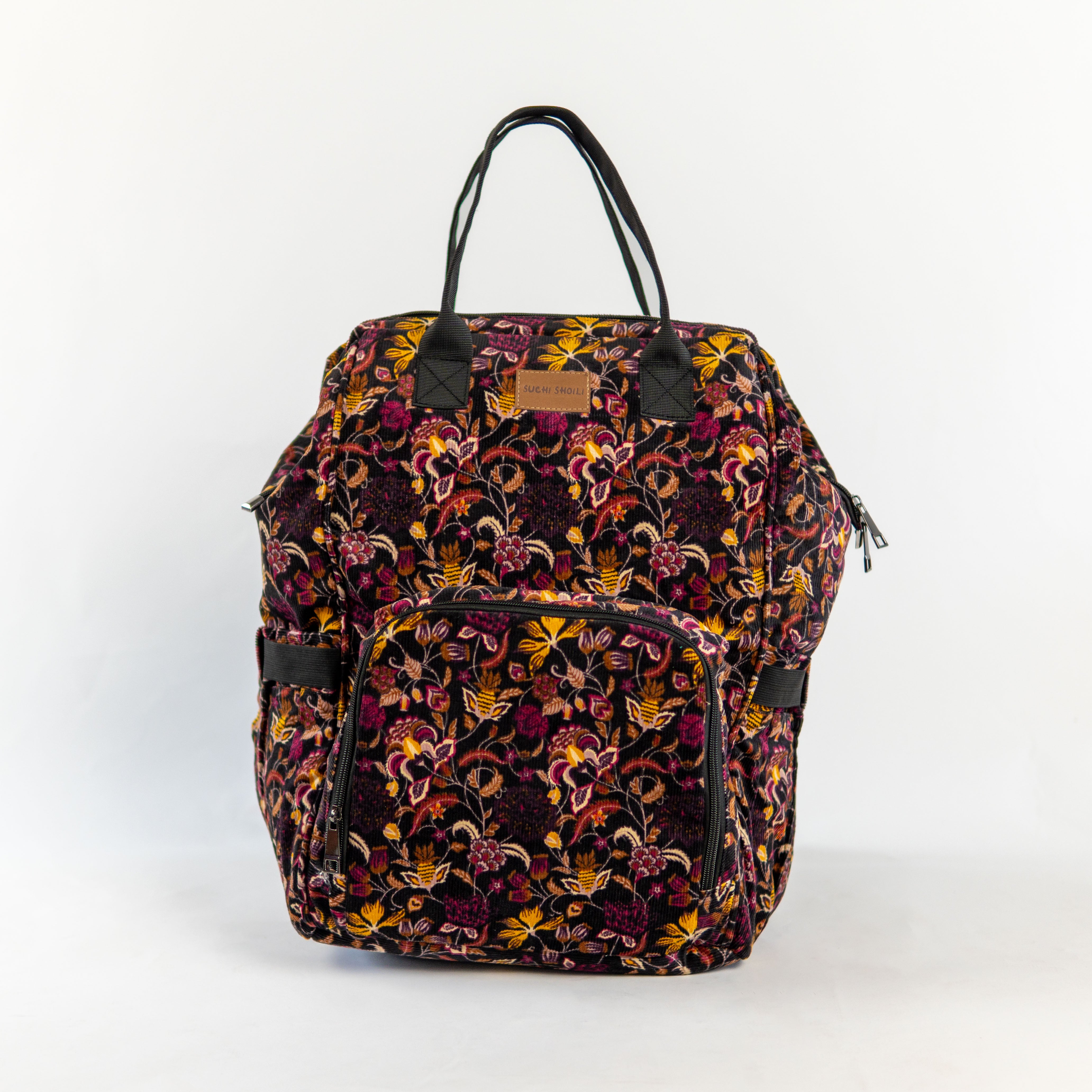 Royal Maroon Garden Corduroy Fabric Tinker Mommy Backpack