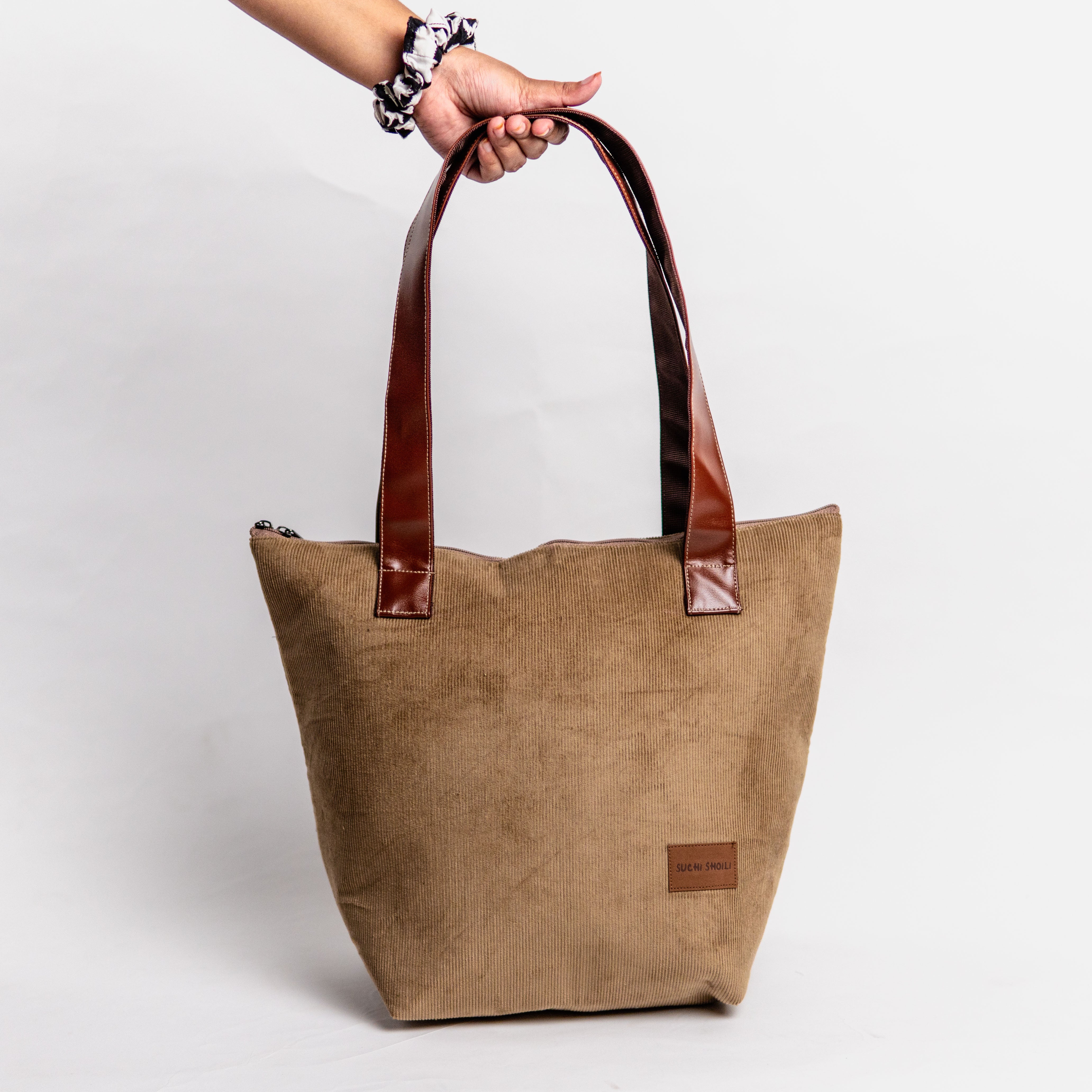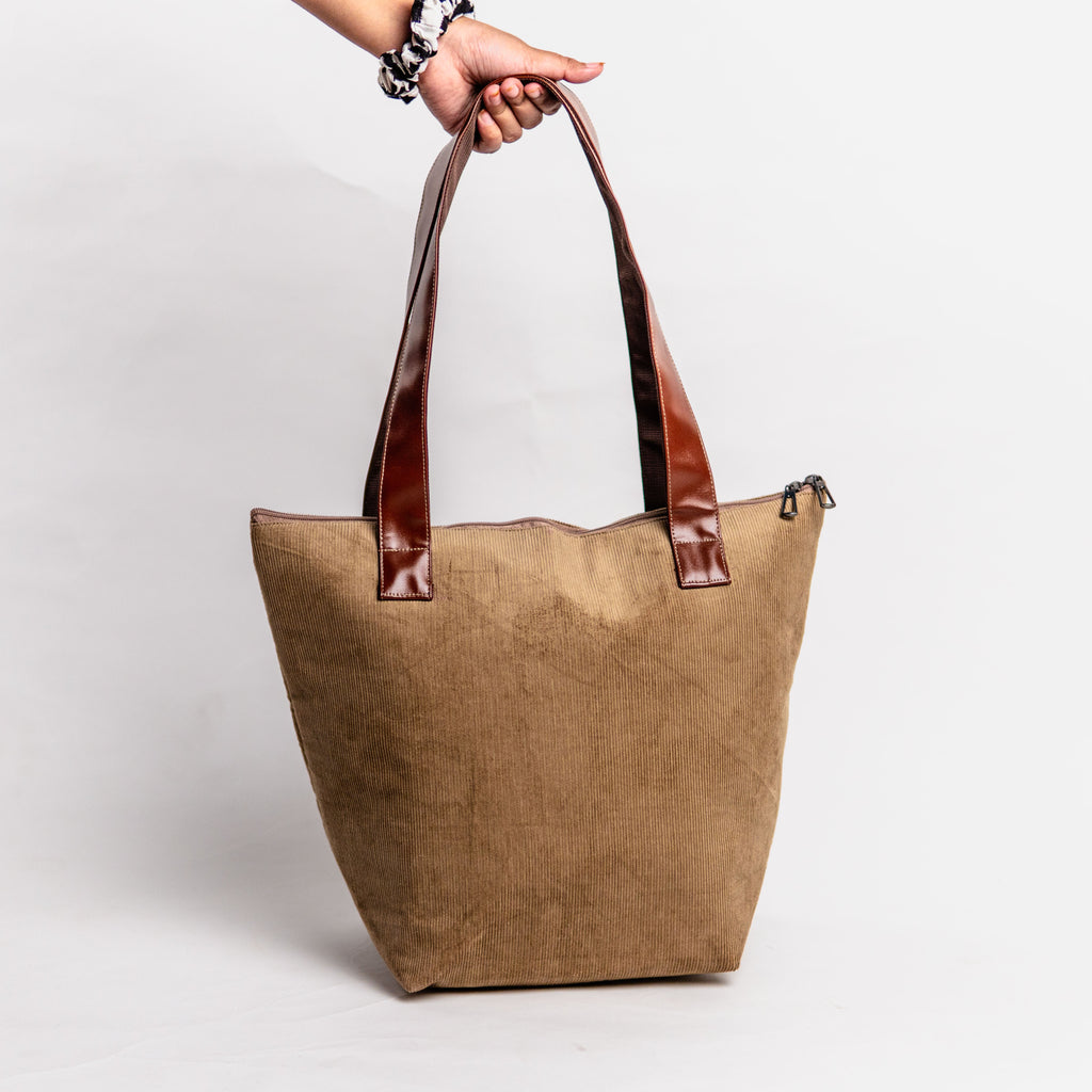 Ash Send Corduroy Fabric Tulip Tote Bag