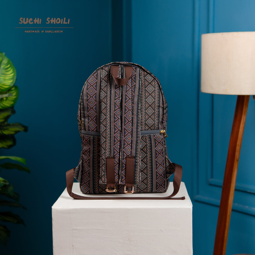 Geomatric Phool Corduroy Fabric Anti Theft Premium Backpack