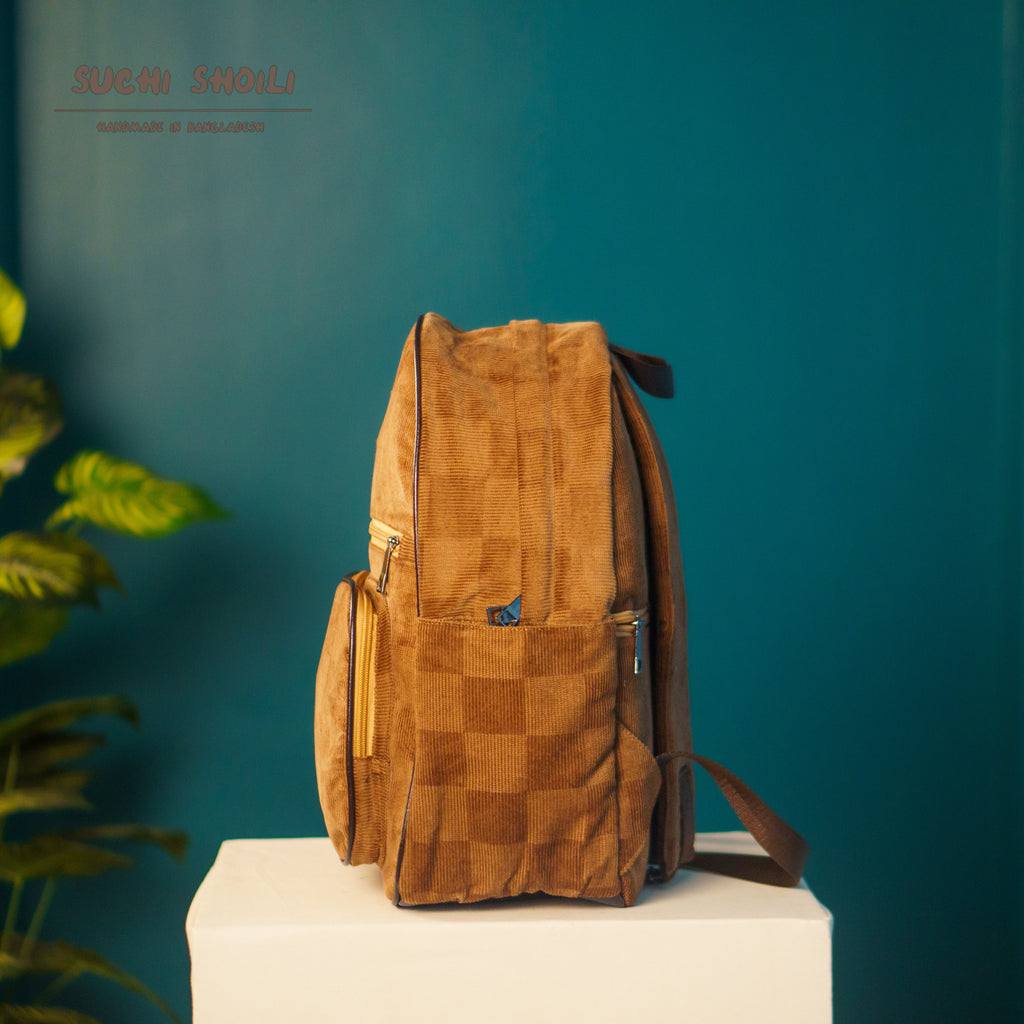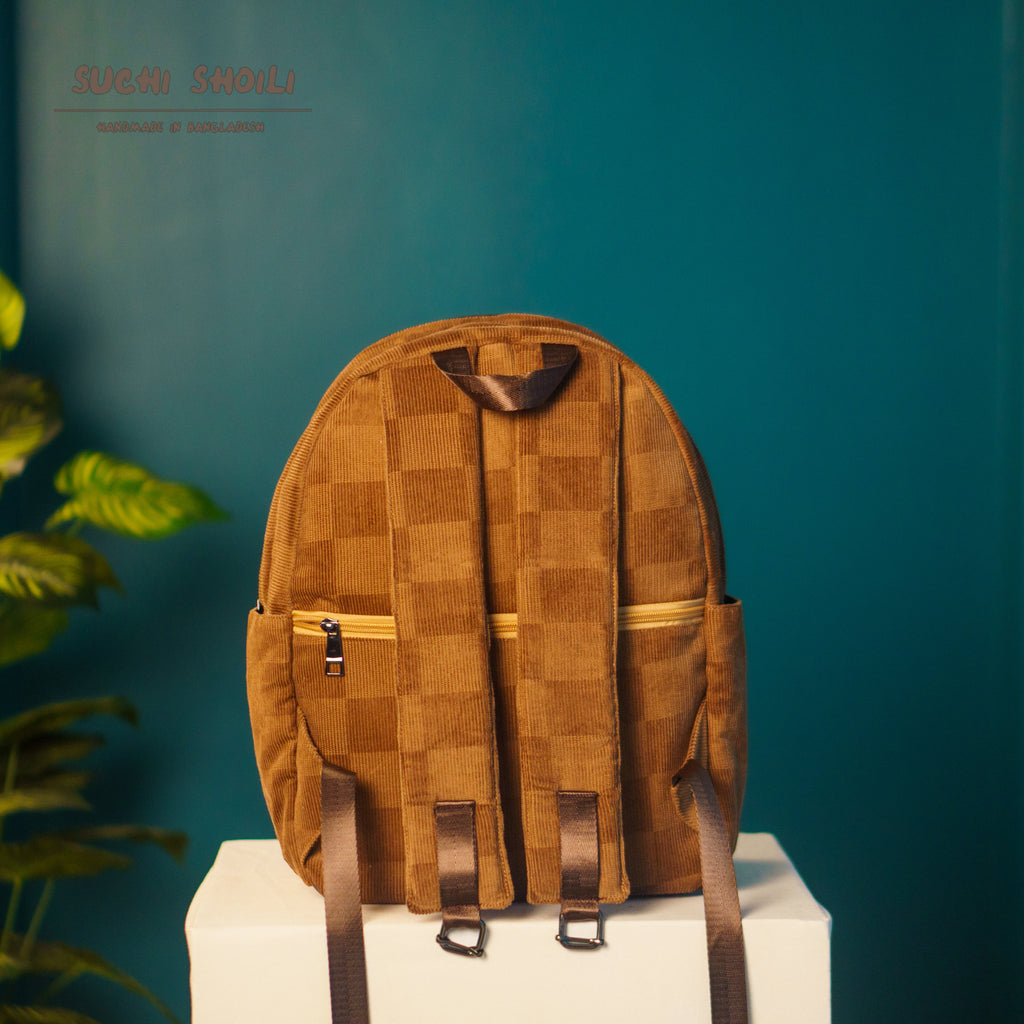 Golden Grid Corduroy Fabric Core Color Aboni Backpack
