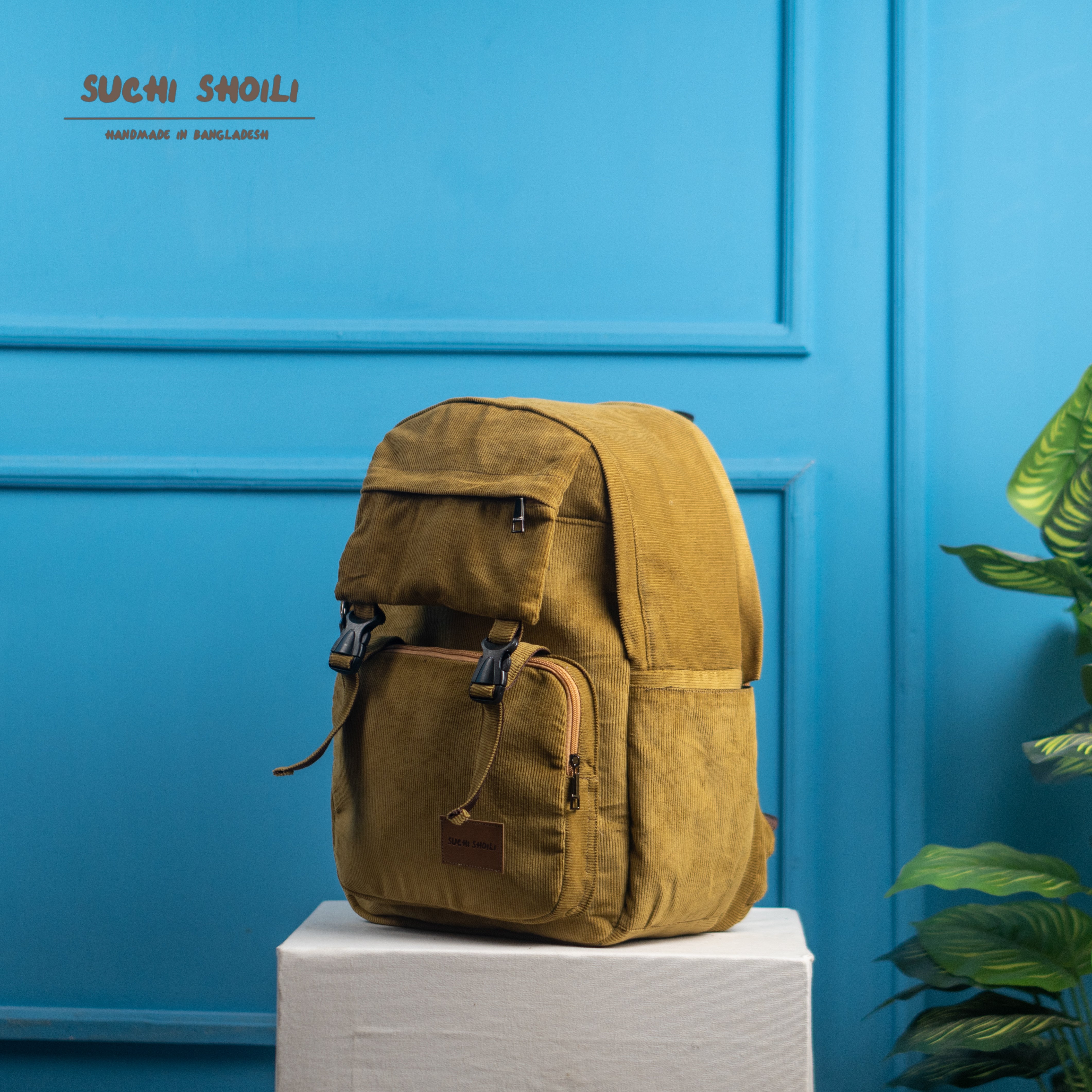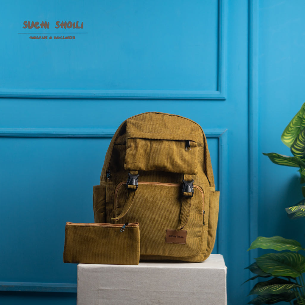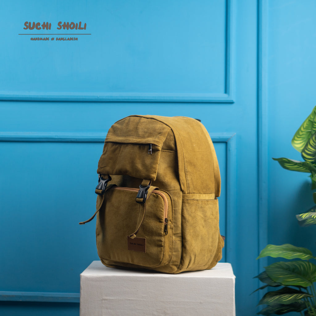 Lite Yellow Corduroy Fabric Metro Backpack